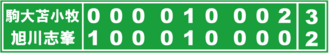 九回に悪夢が待っていた。旭川志峯の先発・大渕蒼空(そら)投手(2年)は先頭打者に中前打を許し、続く自身の野選などで1死二、三塁のピンチを招いた。駒大苫小牧の代打・太田勘介内野手(1年)の打球を遊撃手が失策し、2人の走者が生還して逆転された。