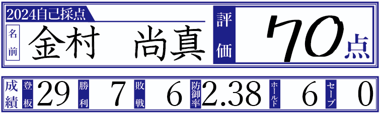 2024自己採点~金村尚真の場合~ 中継ぎから先発へ再転向 堂々の7勝をマーク