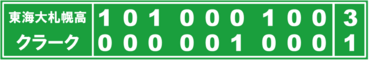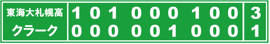 三回、東海大札幌高は先頭の桜庭が右中間へ打ち上げた当たりを、相手の右翼手と中堅手がお見合い。ラッキーな二塁打で好機をつくると、1死三塁から再び4番・太田勝馬が左前への適時打で追加点を奪った。クラークは四回2死で、辻田から1年生左腕の青木櫂士投手にスイッチ。辻田は左翼に回った。