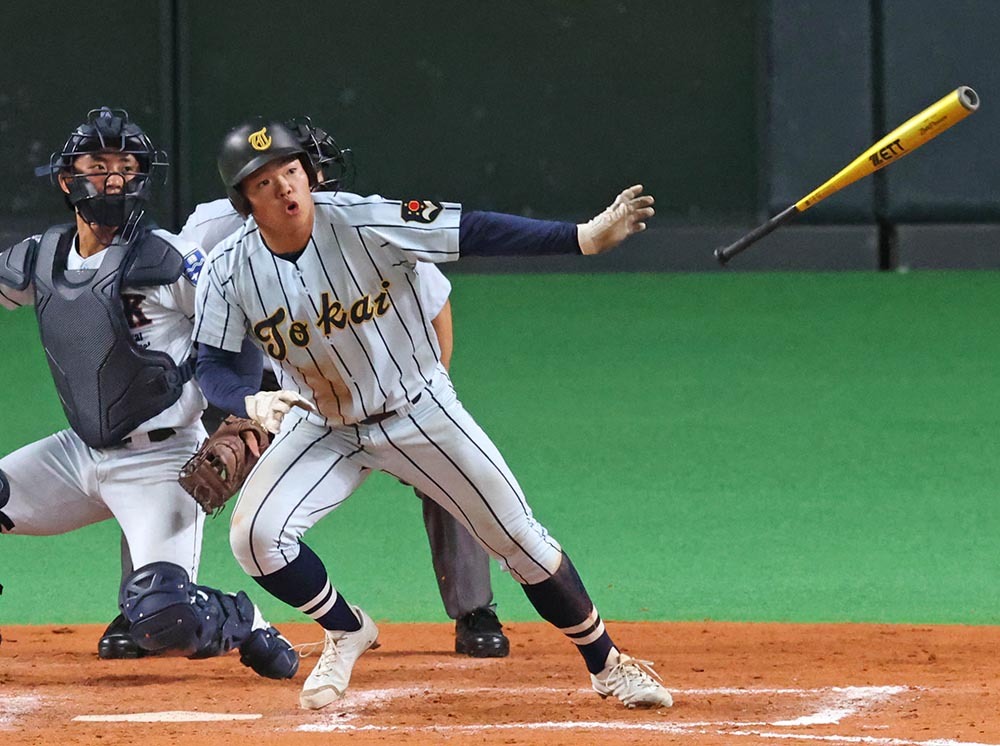 開始早々、東海大札幌高が相手の守備のミスを見逃さず、先制につなげた。先頭の山口聖夏遊撃手(2年)が相手失策で出塁すると、続く桜庭りき右翼手(2年)の左前打、さらに鈴木賢有捕手(2年)の三塁線へのバントヒットで無死満塁とすると、太田ツインズの弟・勝馬一塁手(2年)の大きな右犠飛で、三走が楽々生還した。