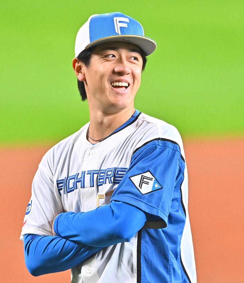 現在、シーズン中に使っているものとは違うプレミア12の公式球でキャッチボールなどを行っている。この日は、エスコンのマウンドから投球し、感覚を確かめた。従来のボールと比較して、縫い目が低く、若干小さく感じるという。