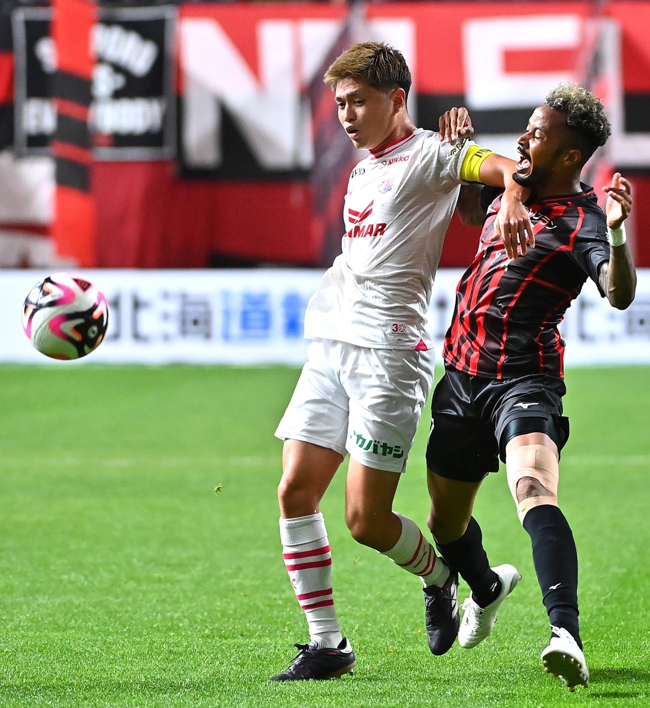 勝ち点3がどうしても欲しい札幌は、最後まで必死に食らいつく。同アディショナルタイム7分には、FKのこぼれ球をペナルティーエリア手前から菅が豪快なミドルシュートを放ったが、わずかに左に逸れてしまった。
