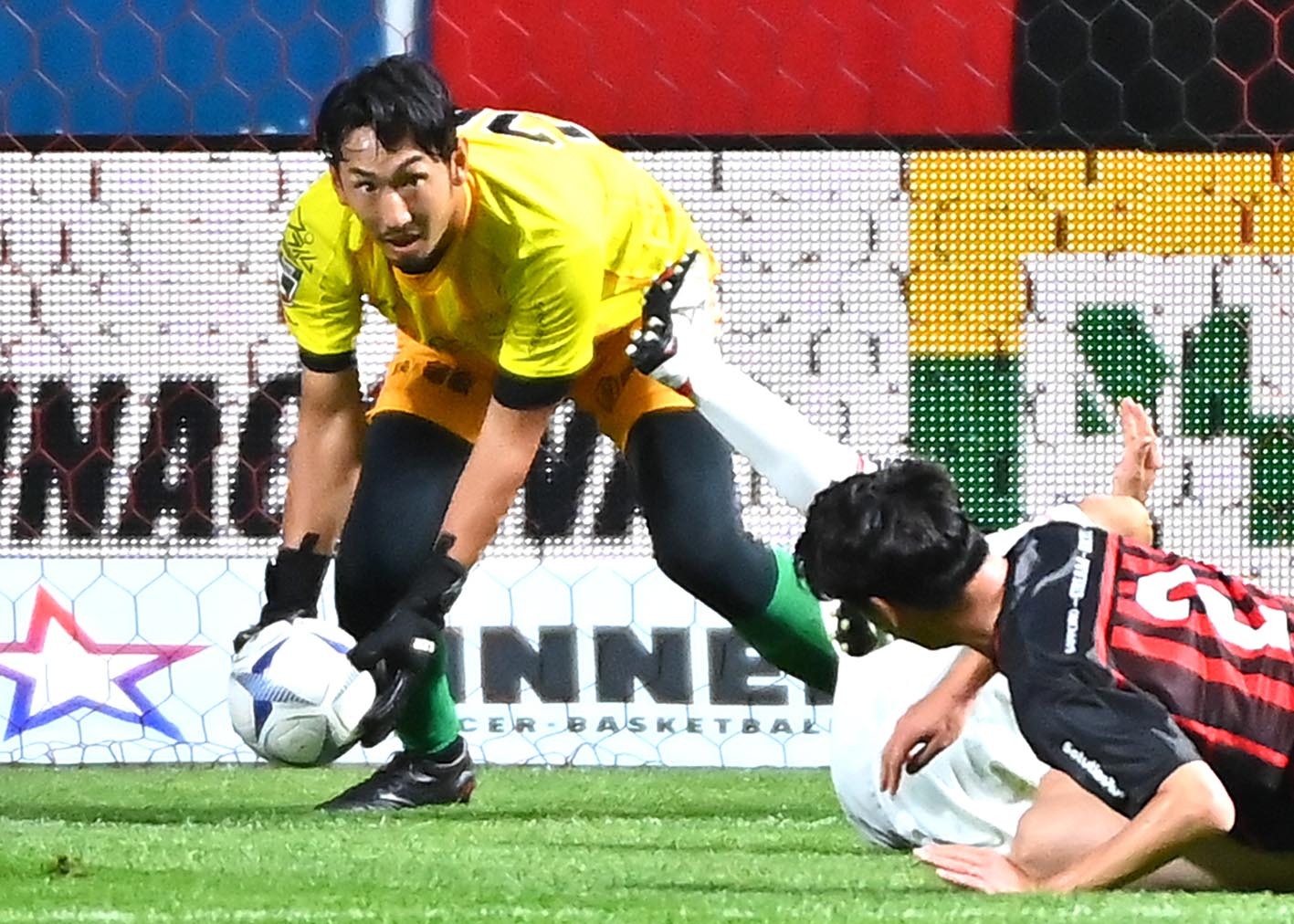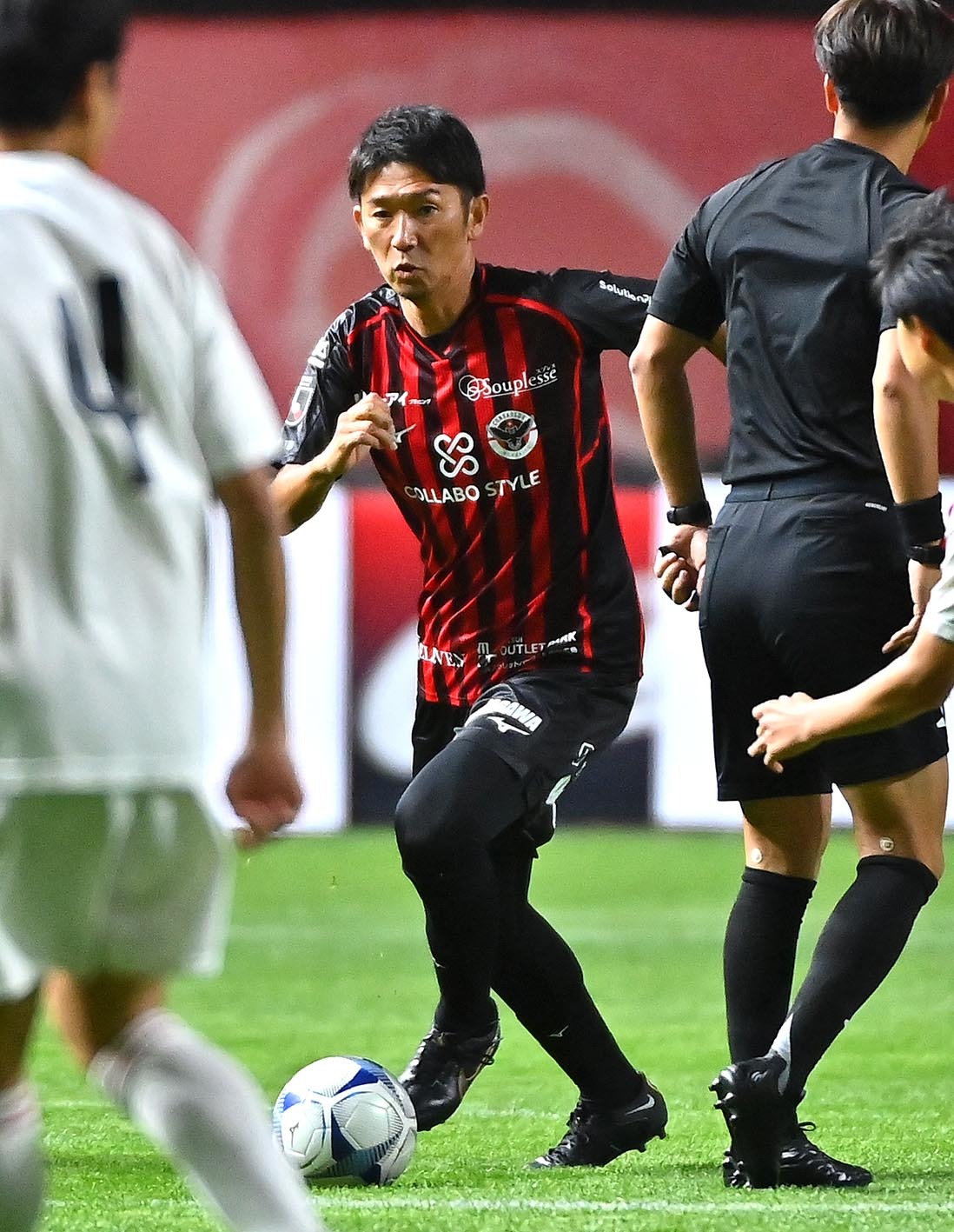 前半、パスを出す芳賀博信