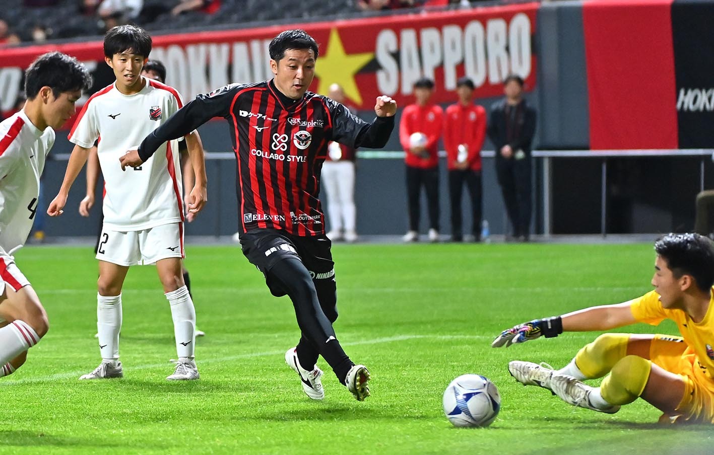 北海道コンサドーレ札幌のOB会「CONSAOLDS」がC大阪戦の前座試合としてアカデミーの札幌U-15と25分ハーフのゲームを行い、1-3で敗れた。かつてトップチームの一員として活躍してきたOBが、これからの未来を担う若き選手たちに屈する格好となった。(以下、敬称略)