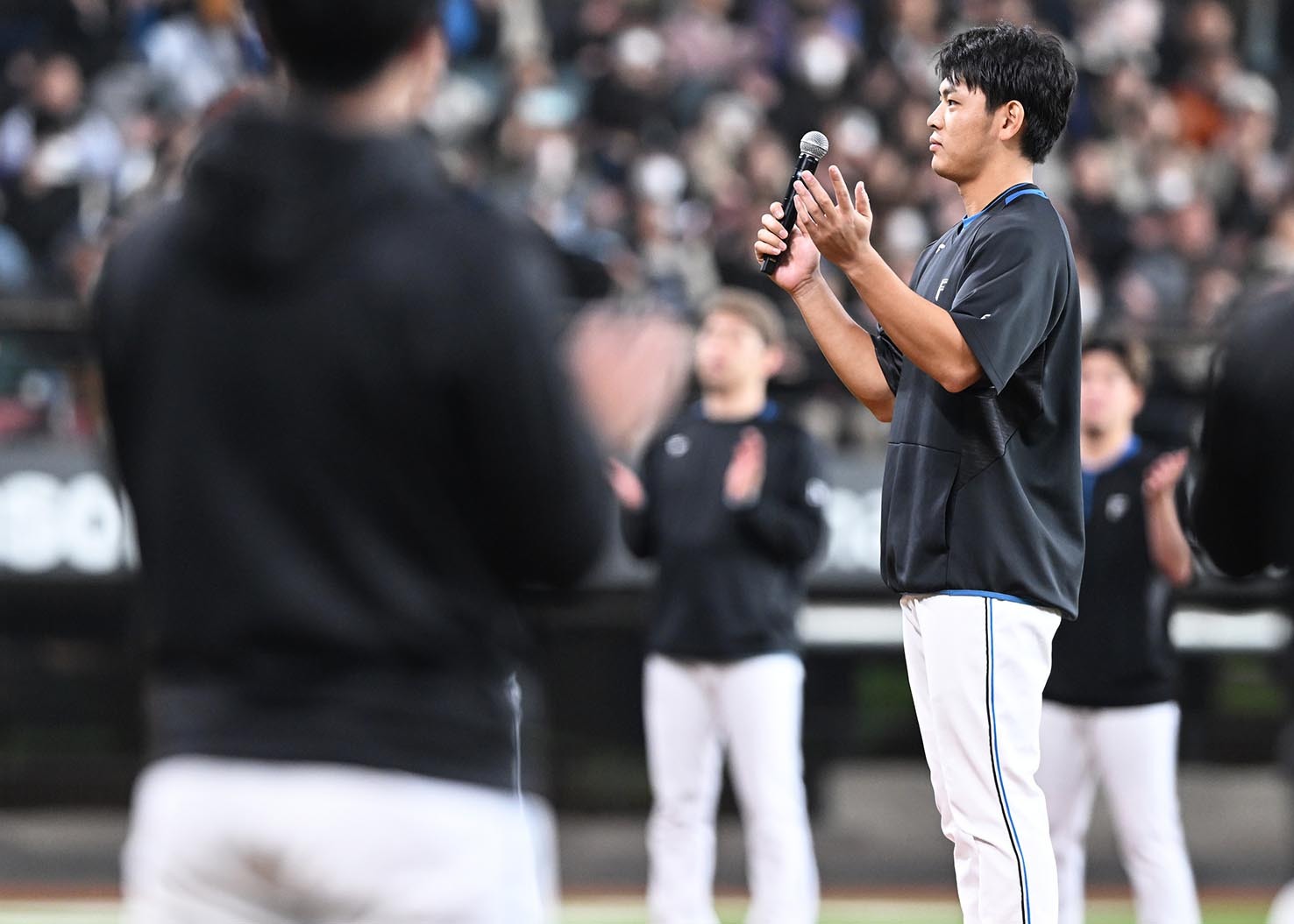 「大人数の前に立つのは初めてではないので、大丈夫かな、と思っていたんですけど。キャンプを締めるというか、大人数の前で最後、締めの言葉というのは、違った緊張感があったので、すごくいい経験をさせていただいたなと思います。球場全体で一丁締めというのは、ファイターズならではだと思うので、すごく良かったです」