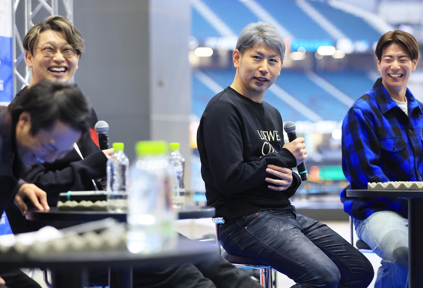 試合で使用する登場曲が流れ、拍手と歓声を浴びながら私服姿の4人が入場した。まずは加藤貴の精密なコントロール、松本剛の好守が映像で紹介され、今季の戦いを総括。池田がマウンドでほえるシーンや、奈良間が一本締めで見せるマイクパフォーマンスにも焦点を当て、当時の本音や裏話なども明かされた。