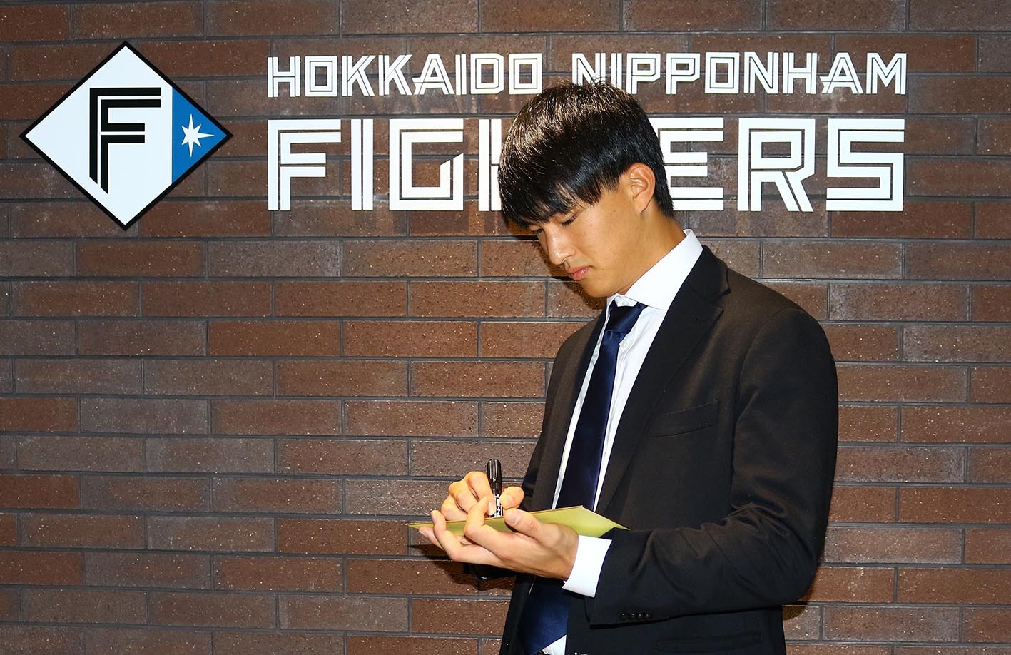 「来年は多く1軍の舞台で投げて、エスコンフィールドでもファンのみなさんに、自分が投げている姿を見てもらいたい。ぜひ、球場に足を運んで僕の投球を見てもらえたらなと思います」