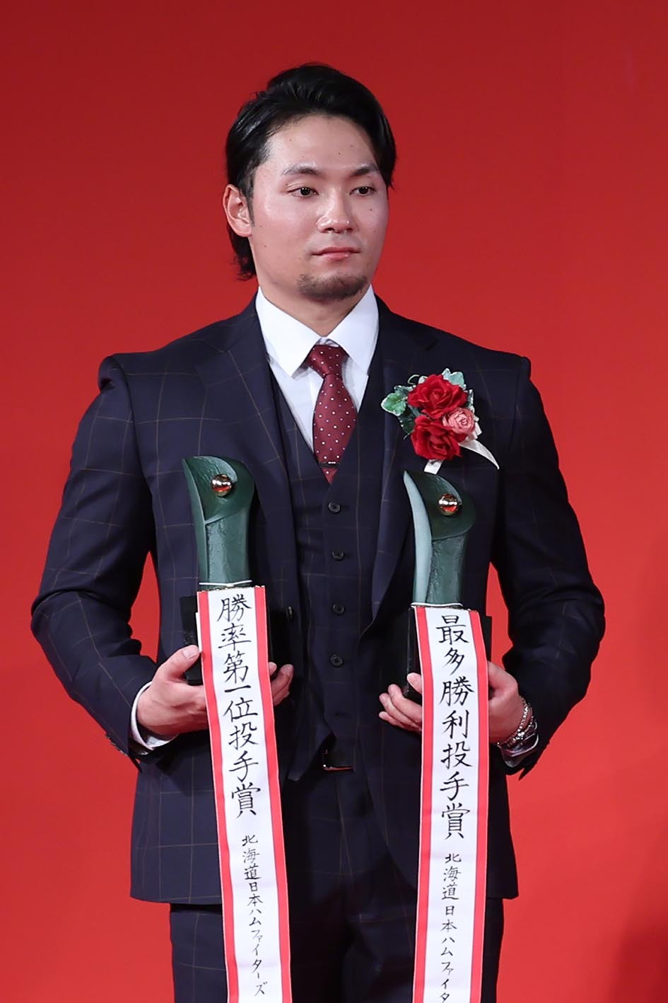 「うれしいです。勝率と勝利数に関しては僕一人ではどうにもならない部分がもちろんありますし、本当にチーム全員がくれた賞だと思うので、監督、コーチ、選手、裏方さん、スタッフ含めて感謝して、きょうという日をかみしめたいです」