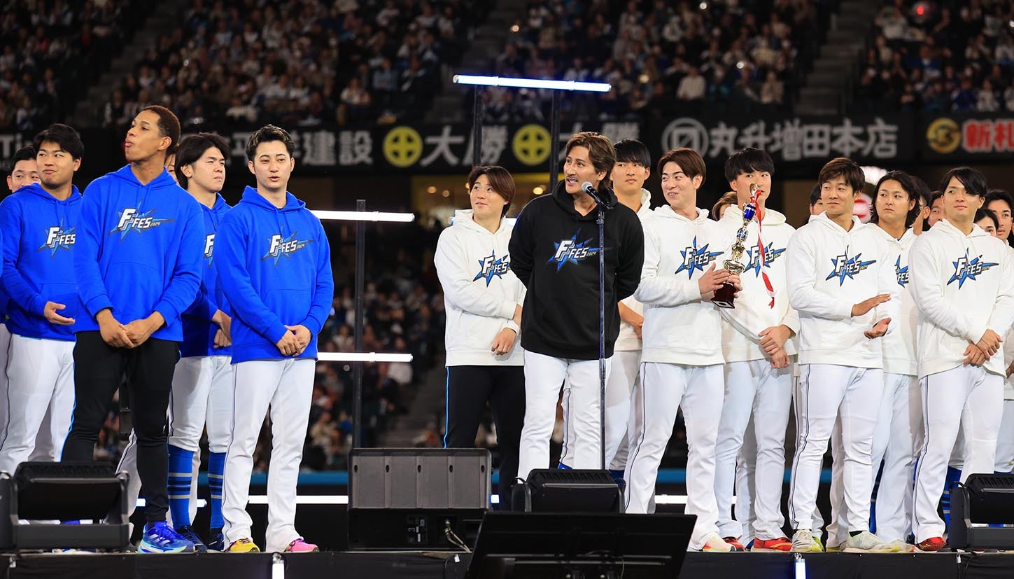 日本ハムの新庄剛志監督(52)が30日、エスコンフィールド北海道で行われた「F FES 2024」に参加し、前日29日に明かしていた25年スローガンを撤回した上で「来年のスローガンを言います。『大航海は続く』。これでいきたいと思います」と発表した。