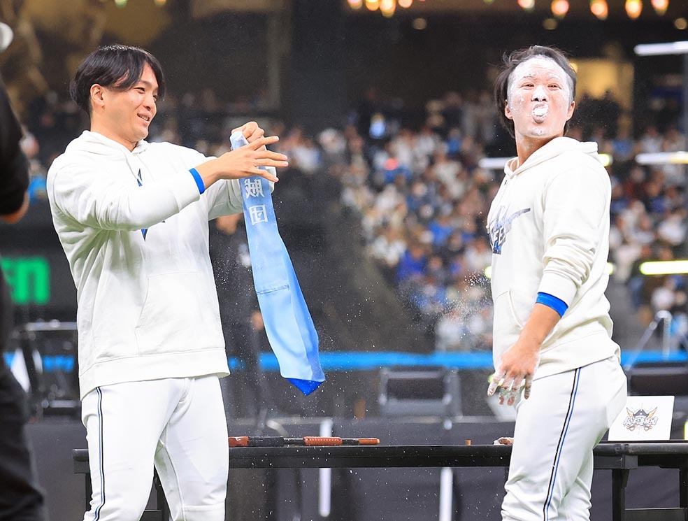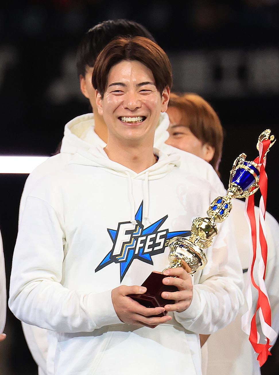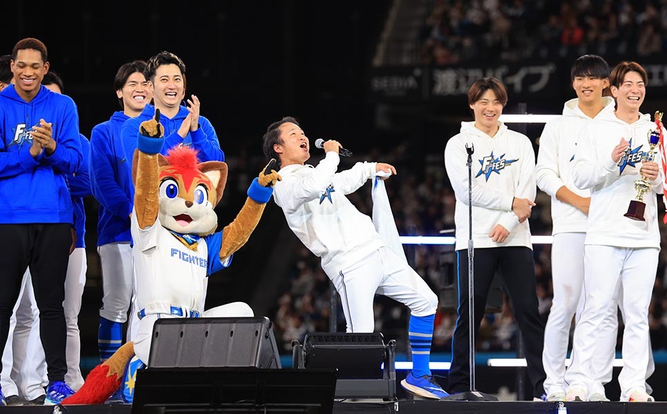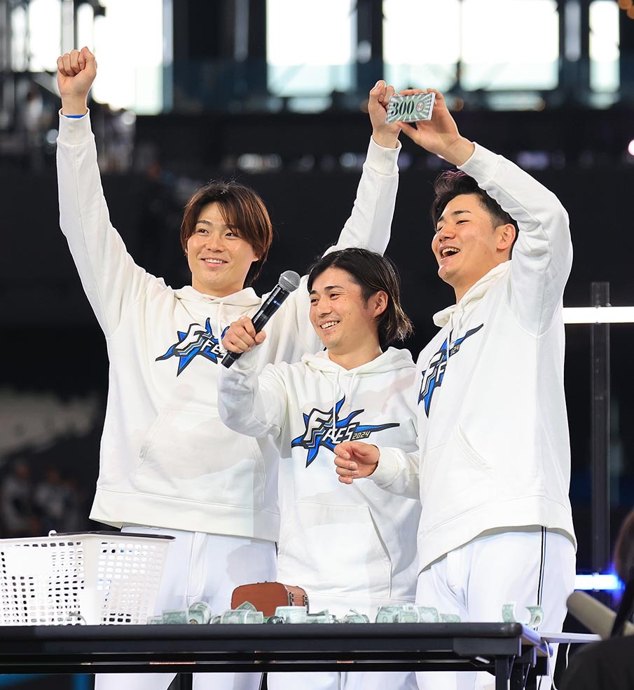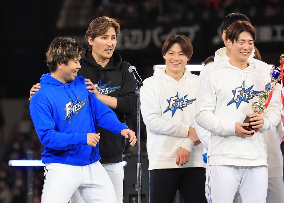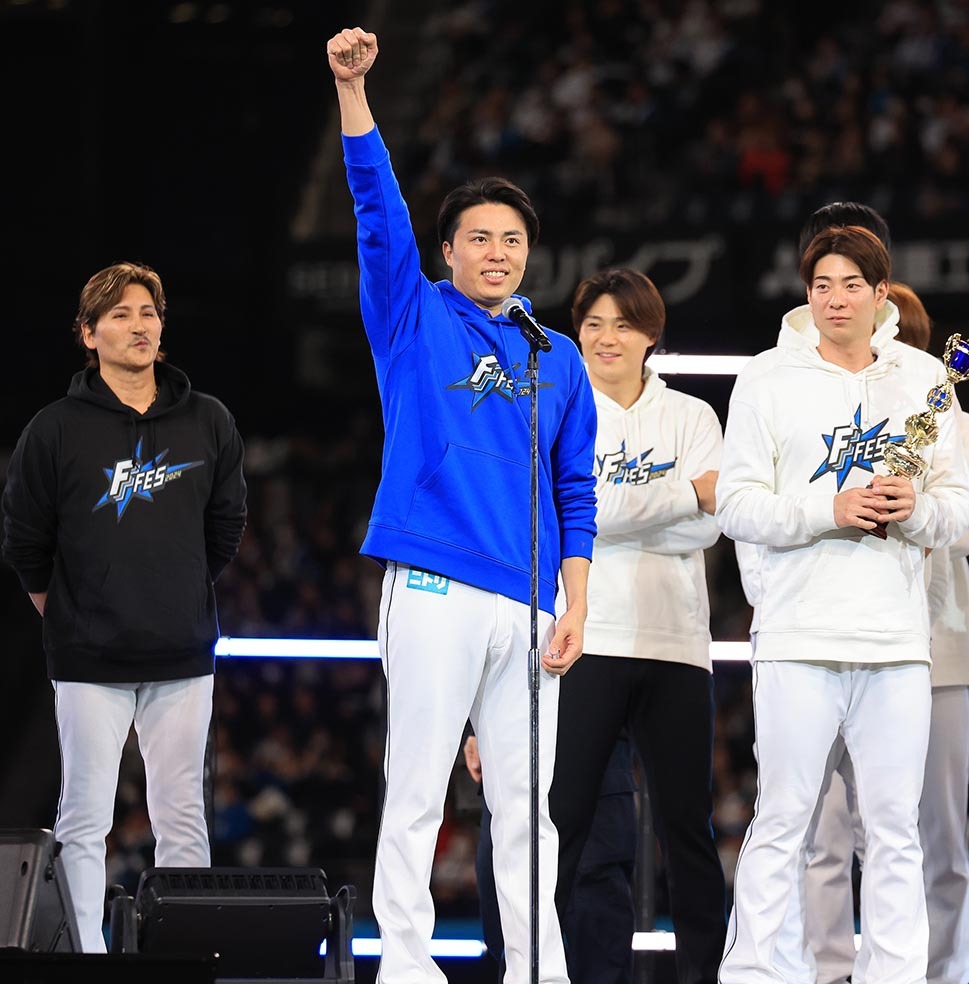 そして、フィナーレでは新庄監督が開幕投手に金村、開幕4番に野村、開幕抑え候補に斎藤と田中正を指名し、スローガンも発表。来季への期待がグッと高まる形で「F FES 2024」の幕は閉じた。