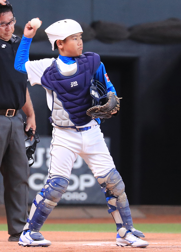 450人の狭き門をくぐり抜けた16人の精鋭6年生が、エスコンフィールドで躍動した。先発したエース候補の左腕・前口栄飛(えいと)投手(西岡スターズ)が4回1/3無失点と好投。「投げている感じがすごく良くて、緩急はあまり良くなかったけど、速球が良かった」。父・良太さん(38)は東海大四高(現・東海大札幌高)でエースとして南北海道4強入り。東海大卒業後、JR北海道でもプレーした。右腕の父を持つサウスポーは「ベイスターズジュニアを完封できるようにスタミナと球速をつけたい。目標は完全試合です」と、意気込んだ。