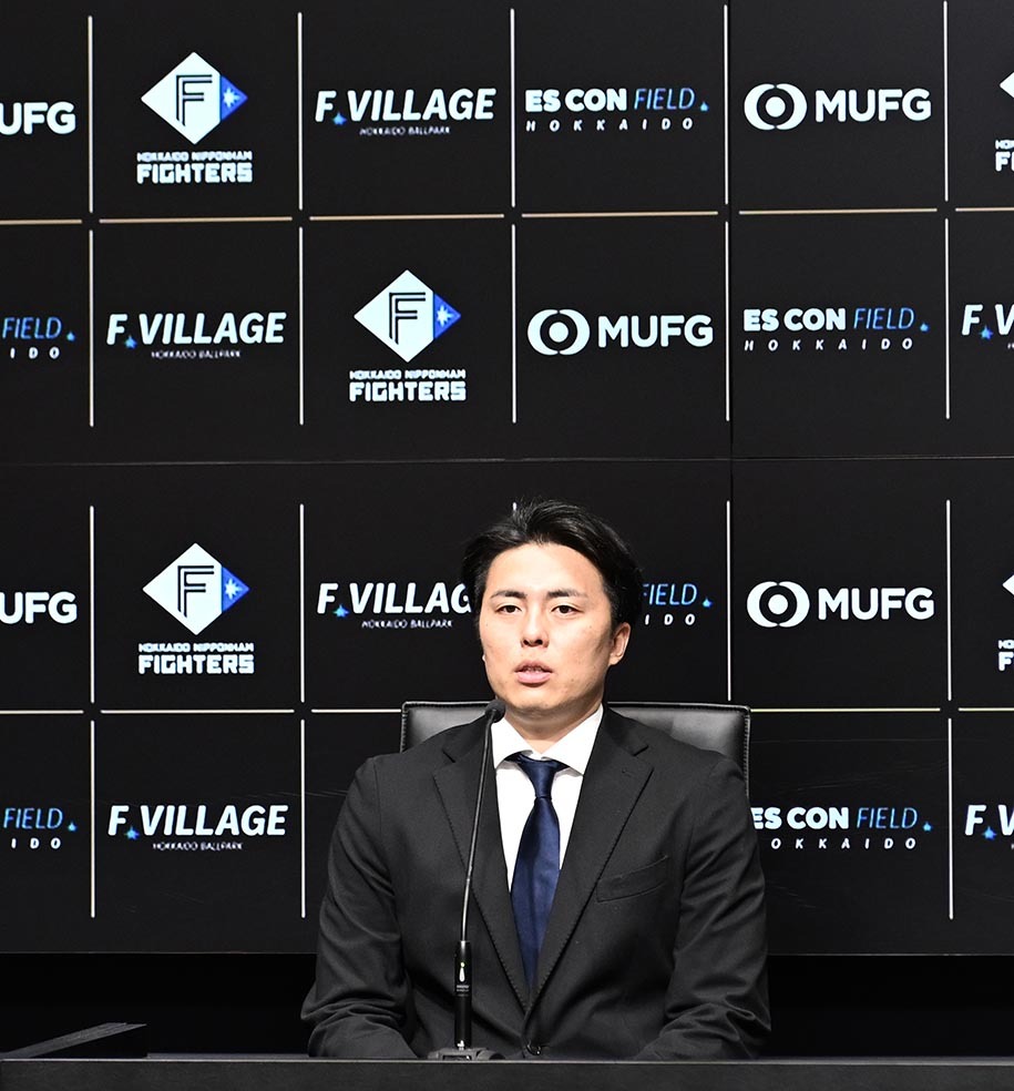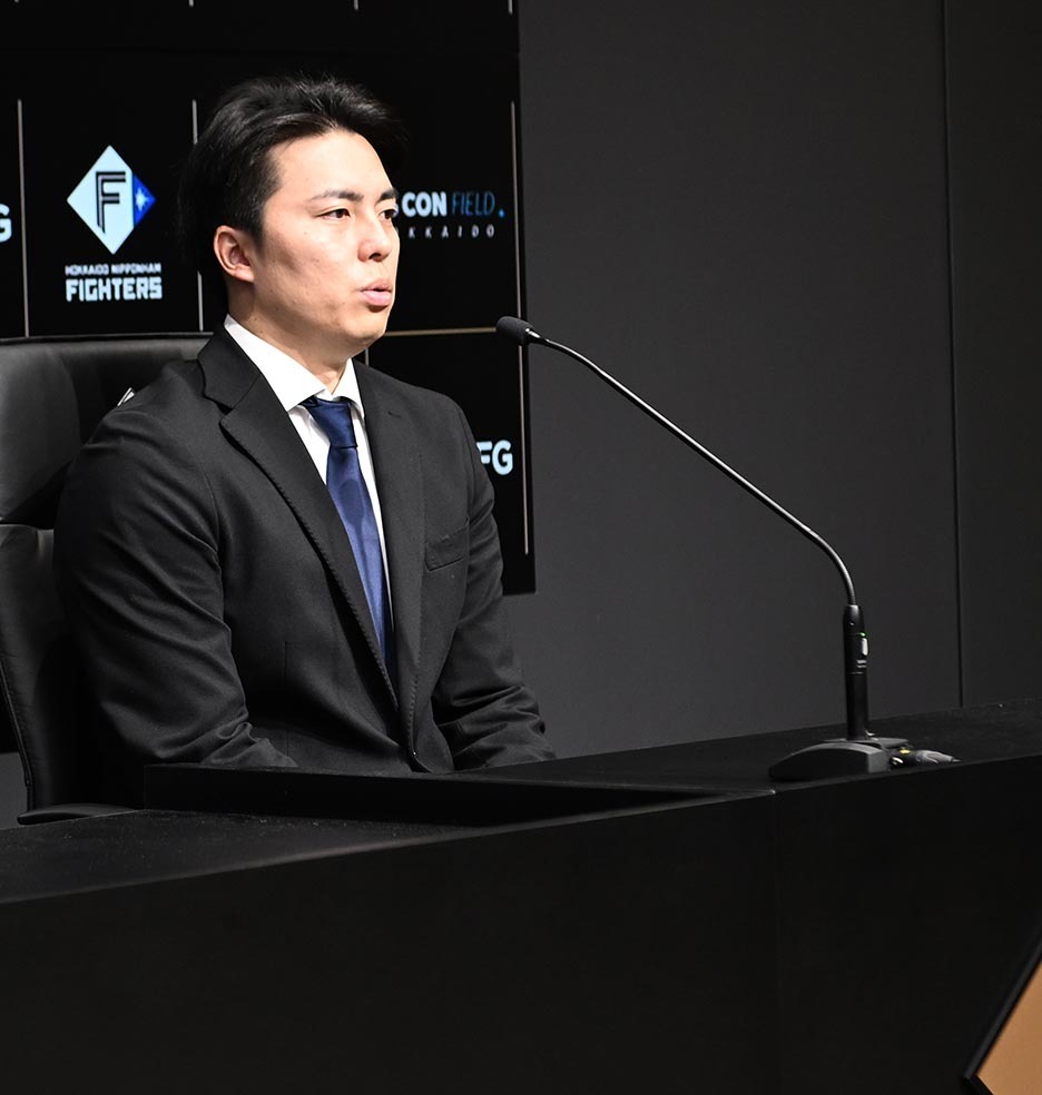 「今年も1年間本当に応援ありがとうございました。特にCSでの声援はすごく自分の力になりましたし、自分の持っている以上のものが出たと感じています。来年はエスコンで日本シリーズができるように全力で頑張っていきます。来年もよろしくお願いします」
