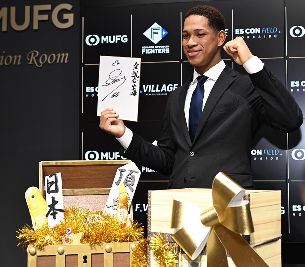 日本ハムの万波中正外野手(24)が6日、エスコンフィールド北海道で契約更改交渉に臨み、8500万円増の1億6500万円でサインした(金額は推定)。交渉の席上では「回数を増やしてほしい」と、プレーオフ進出時点でのビールかけ開催を要望。全試合出場を目標に定めたスラッガーは来季、何度でも歓喜のシャワーを浴びるつもりだ。一問一答は以下の通り。