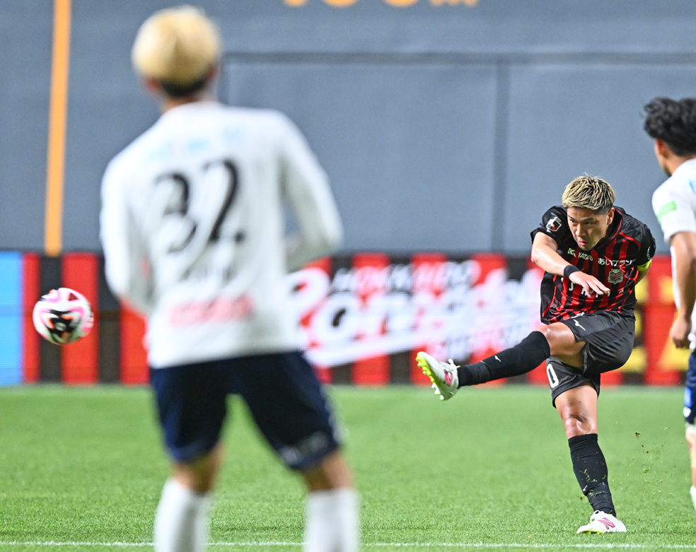 後半に入ってさらに両クラブの戦いは激しさを増していった。前日に契約満了が発表された札幌FW菅大輝(26)、駒井が躍動。同2分、菅が左サイドの空いたスペースでドリブルを開始し、相手の一人を股抜きで抜いてスピードアップし、ペナルティーエリア手前で強烈な左足シュートを放つ。同13分には駒井がペナルティーエリア右からグラウンダークロス。浅野がスルーして、菅がフリーでシュートを放ったが、これもあと一歩のところで阻まれてしまった。