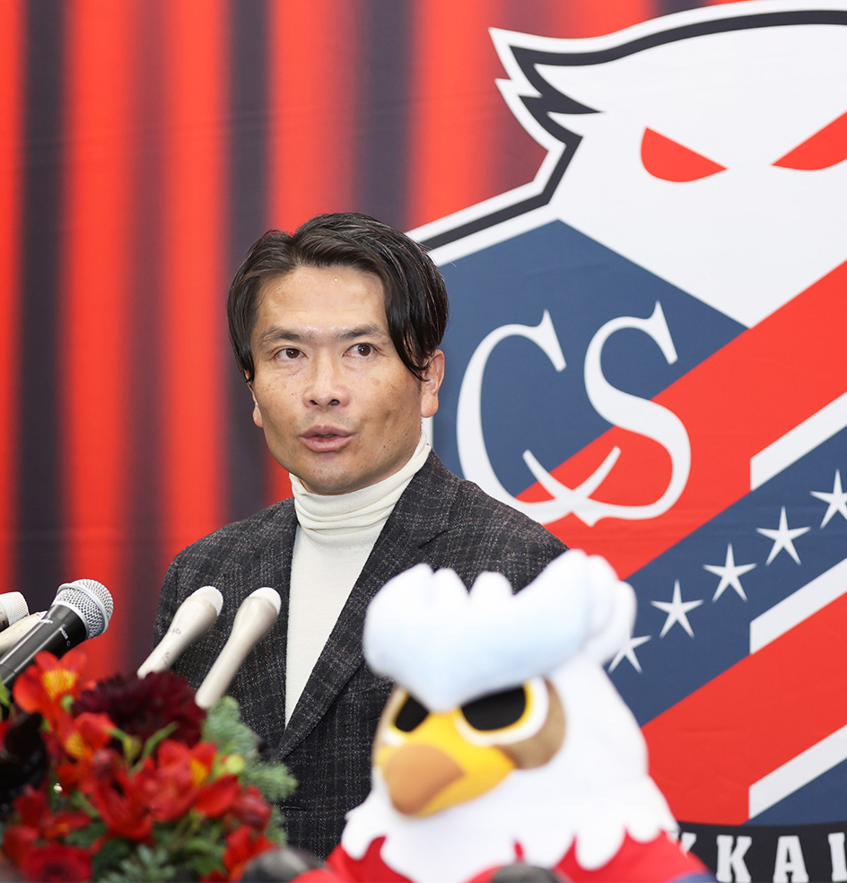 ミシャの後という、非常に大役だと思いますが、自分にとっては、これ以上ないチャレンジだと思って、ここに来ました。これまでの札幌のサッカーを継承しながら、でもそれを継承するだけではなく、前進させていきたいですし、自分はそれができると思っています。自信を持って選手たちと新しい札幌をつくっていきたい。これから(付き合いが)長くなるといいなと思っていますので、よろしくお願いします。