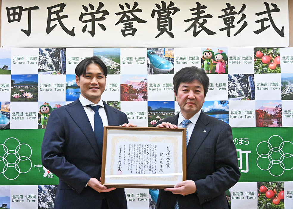 元F戦士の鍵谷陽平さん 七飯町から町民栄誉賞