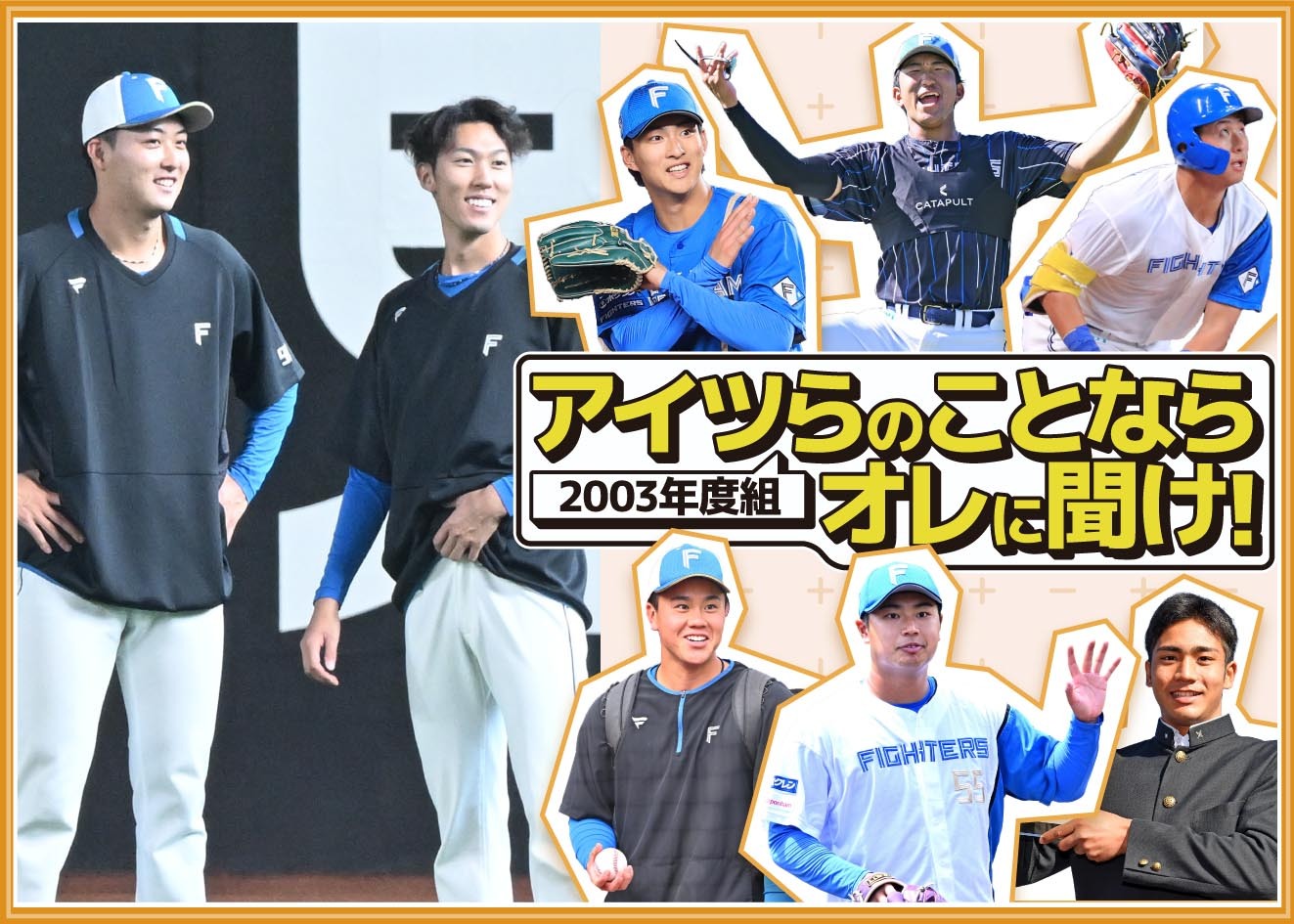日本ハム選手が同学年のチームメートを紹介する連載企画『アイツらのことならオレに聞け!』2シーズン目の第2回は、高卒3年目のシーズンを終えた2003年度生まれが登場。紹介者は、3月に育成から支配下登録をつかみ、プロ初勝利を含む2勝を挙げた福島蓮投手(21)です。今回は強力な援軍として、柳川大晟投手(21)も参戦。周囲から〝ツインタワー〟と呼ばれる仲良しコンビで、仲間たちについてざっくばらんに語ってくれた。