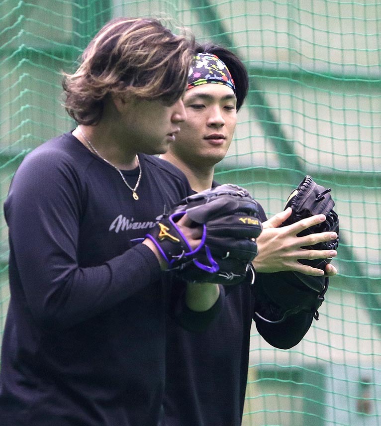 もちろん本業でも、来季に向けて着々と準備進めている。球団には本職である捕手の出場機会増を直訴。この日は左腕の堀を誘い、キャッチャーミットを手にキャッチボールを行った。「久々に生きた球を捕ったんで、全部エグく見えたんです。今日の投げ方、宮さんみたいでしたね。意識しているのかな?」。