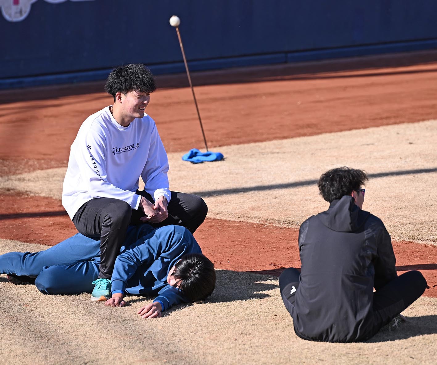 「今年、(山崎)福也さんに結構、話を聞いてたんですよ。最初、福也さんの方から、『どんなトレーニングしているの?』って聞いてくれたので、僕の方も『福也さんはどんなことしているんですか?』って聞かせてもらって。福也さんは球速で勝負しているタイプでもないし、あんまりがっつりウエートはやってなさそうだなって思っていたんです。しかも、いっつもすぐ(球場から)帰るので(笑)。でも聞いたら、めっちゃやっているらしい。やっぱり、ウエートが全てなんだなと。中6日の調整とかはまだ全然、分からないので、そこはこれから聞いていきたいです」