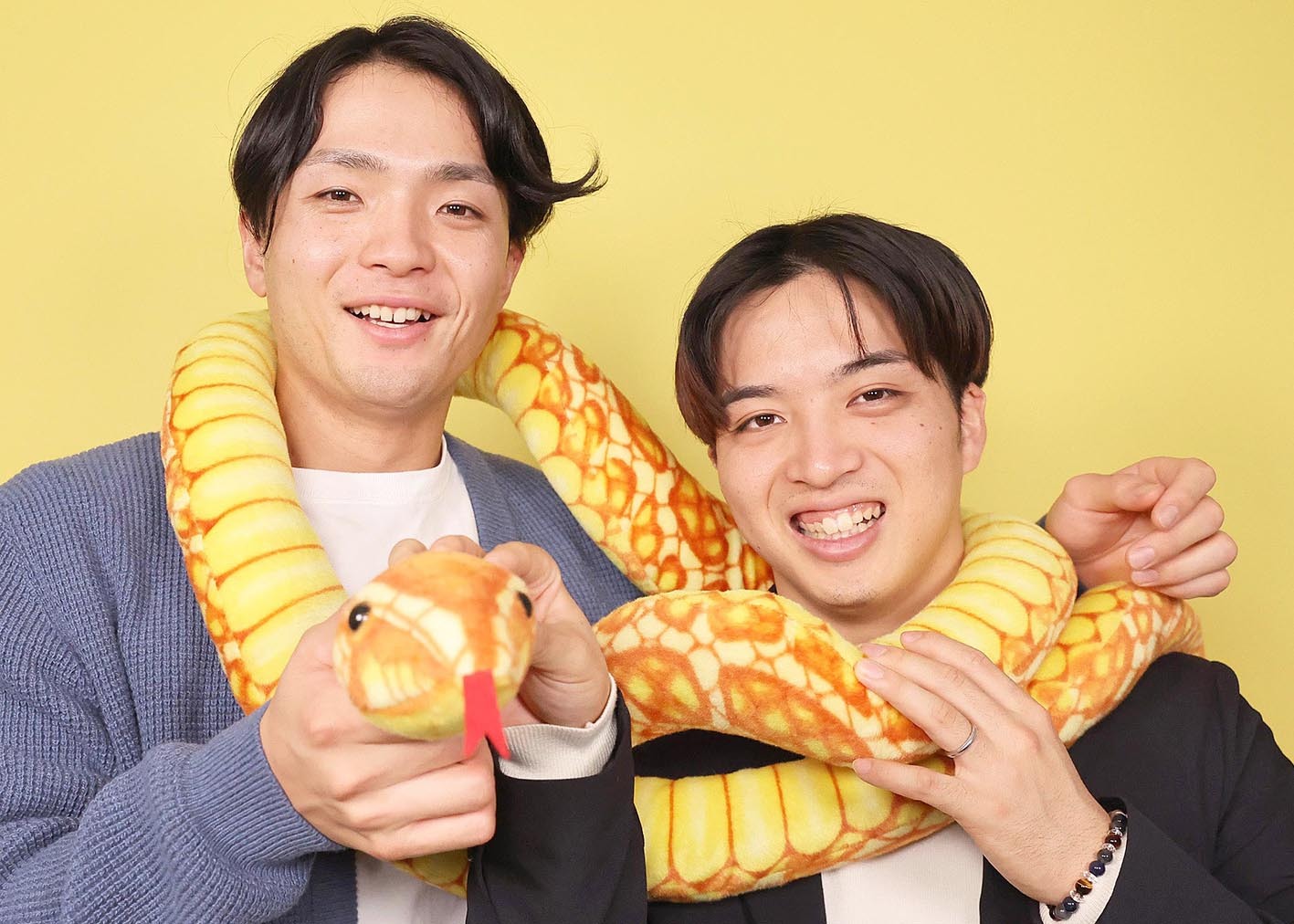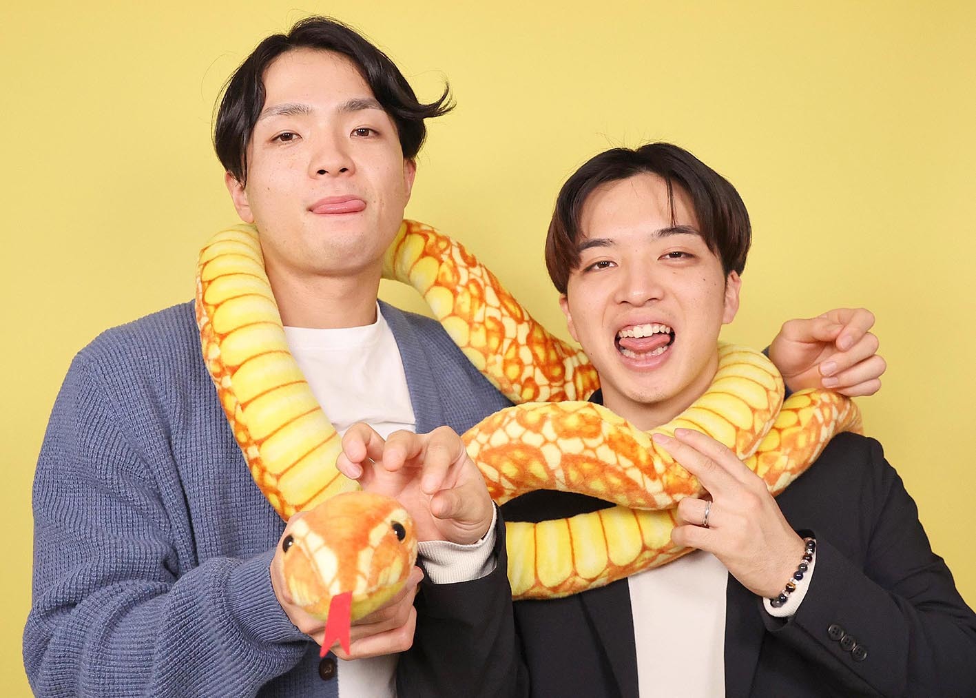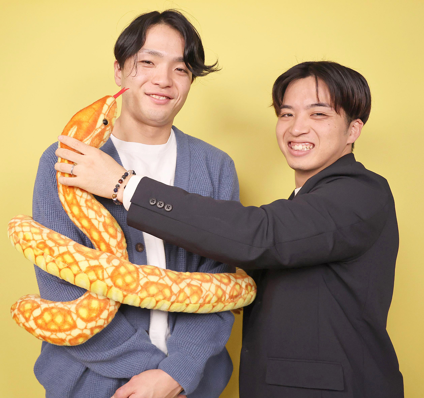巳年の来季も! さらなる飛躍を誓った郡司(左)と山本=撮影・松本奈央