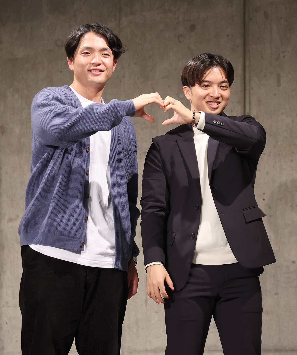 山本「去年、トークショーでパーカーを着て緩い雰囲気で行ったら、郡司さんはカッチリしてたので。きょうは遠征へ出る時に着ているセットアップにしました」
