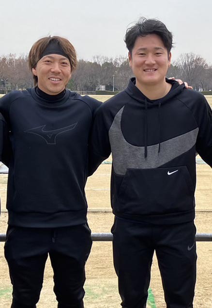 1月、関学大の先輩でもある宮西(左)とともに自主トレを行った山本晃