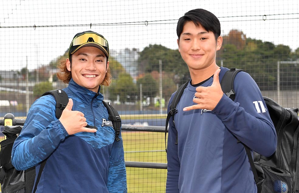 今季最多勝と最高勝率のパ・リーグ2冠に輝いたエースと、育成選手のまま高卒4年間を終えた自身との差は痛いほど分かっている。だからこそ、誘いを受けた際には「僕で良いんですか?」と聞き返した。それでも伊藤の後輩を思う気持ちに触れ、「本当にうれしかったですね。毎年、鎌ケ谷か地元で一人でやっていることが多かったんですけど、どうしても結果が出ない4年間だったので、どこかで変えないといけないなと思っていた。そんな時に大海さんから『一緒にやるか』とお誘いをいただいた。ここまで結果を残してタイトルも獲っている方に、同期とはいえ一緒に練習させてもらうのは、うれしいことでもありますけど、やっぱり大海さんの来シーズンを邪魔しちゃいけないという気持ちもある。来年、僕も一緒に活躍できるように頑張らなきゃいけない。こうやって誘っていただいて、よりキャンプに向かう気持ちが強くなっていますし、メラメラしています」と、闘志を燃やしている。