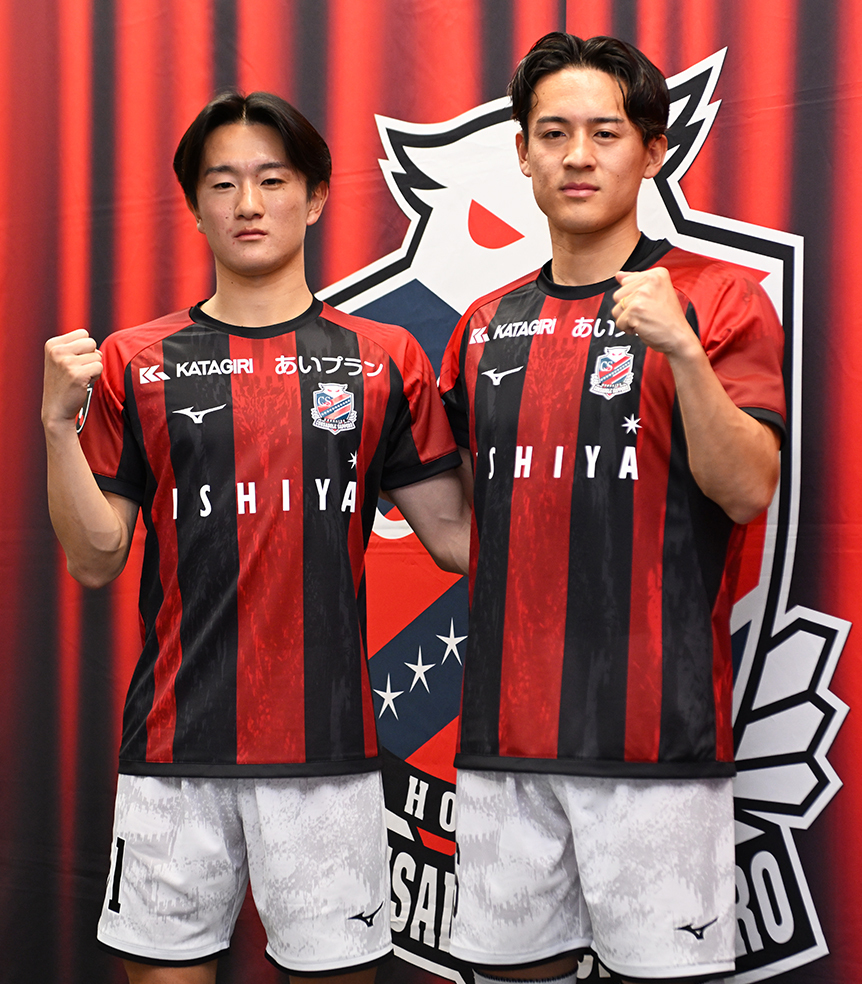 北海道コンサドーレ札幌は6日、札幌・大和ハウスプレミストドームでベルギー1部・コルトレイクから移籍したMF高嶺朋樹(27)と、大阪体育大学から加わったMF木戸柊摩(22)の新加入会見を行った。札幌U-18出身の2人が、愛着ある地元クラブにフレッシュな風を吹き込む。会見の一問一答は以下の通り。