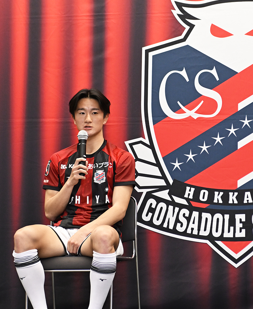 高嶺「去年の前期までは柏レイソルに所属していたので、あまり札幌の試合を見ることはなかった。コルトレイクに移籍してからは時差もあったけど、見られるときは札幌の試合を見ていた。今季に関して言えば、多くの勝ち点を取って残留まであと一歩まで来ていた。降格してしまって…、争っていたのは柏レイソル。そのときはコンサドーレの(移籍に関する)話はなかったですし、どちらも応援していたので落ちてほしくなかった。札幌が落ちてこういう話が来た時に、札幌の力になれると率直に感じた。いろいろ考えたけど、自分のキャリアの中で、この札幌を選んだのは間違っていなかったと思っている」