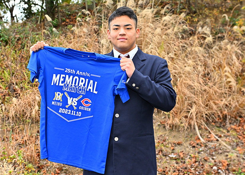 「このTシャツなんですけど、中学校時代の先輩(22年に練習試合中の事故がきっかけで亡くなられた吉川孝成さん)が明豊高校に行っている間に亡くなられて、そのTシャツを(吉川さんの親から)もらったので、一緒に持ってきました」