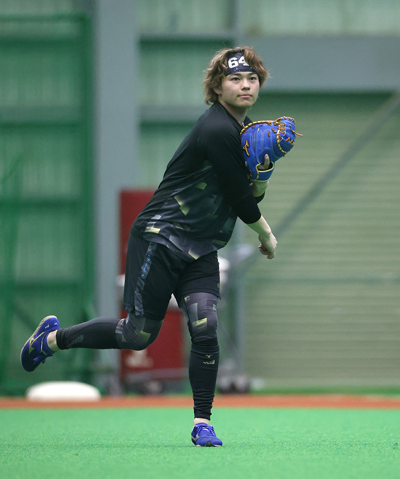 室内での打撃練習、外野のポール間でのダッシュなどをみっちり行い、「走れるのが僕の強みだと思っているので、ランニングは少なくならないようにという意識で走っています」と汗を拭った。
