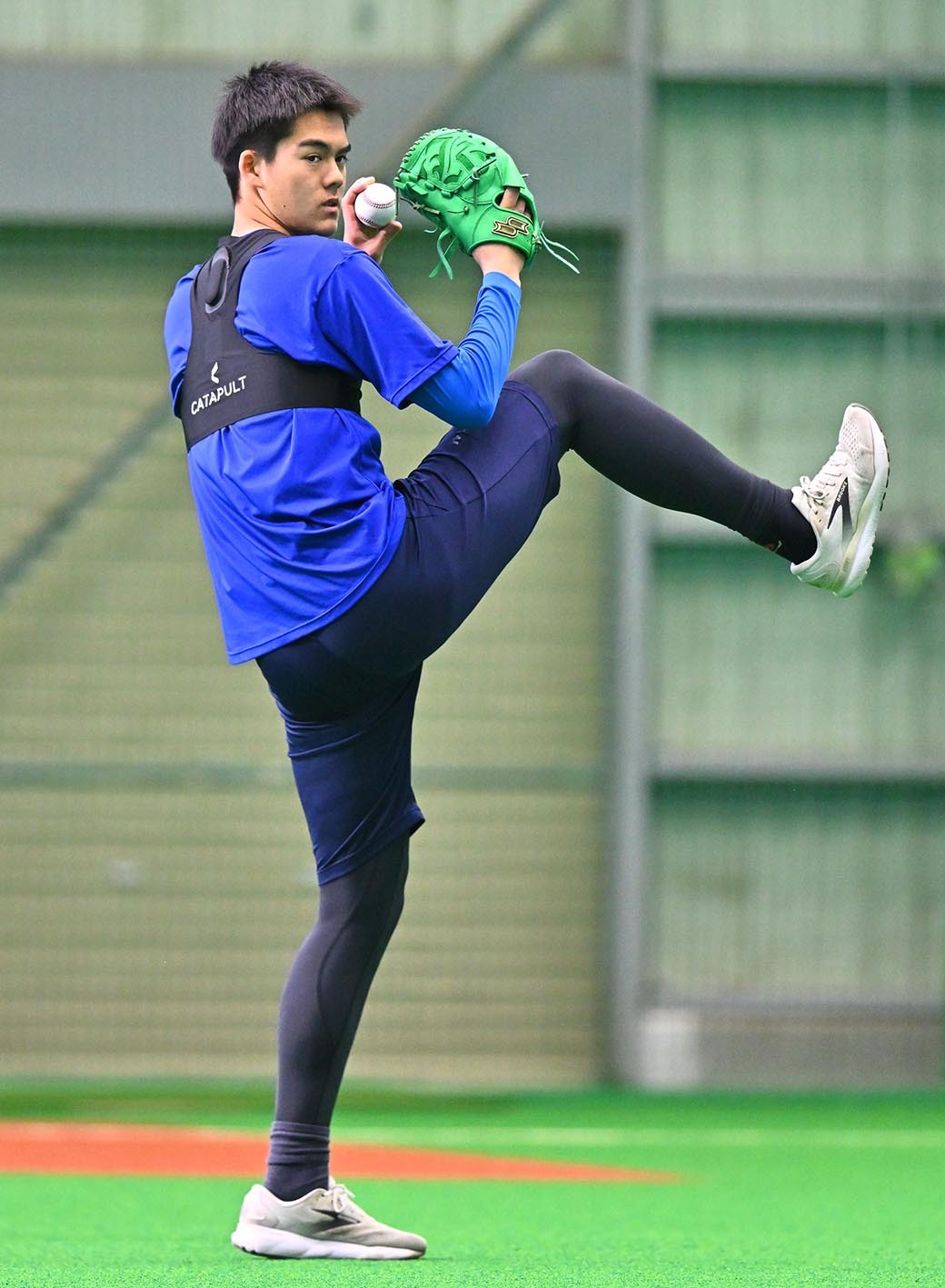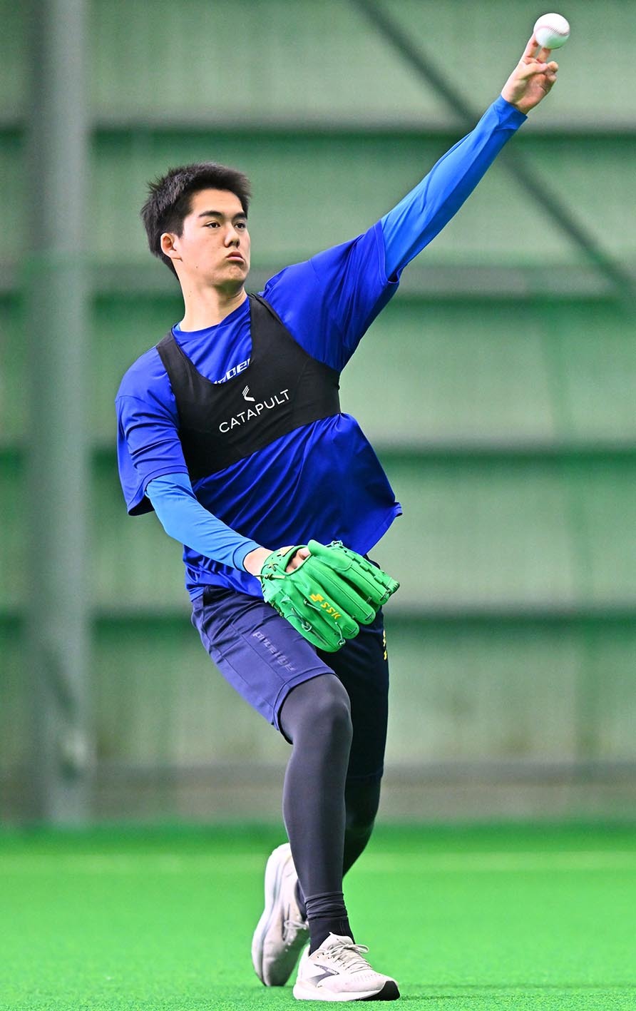 キャッチボールするドラフト2位の藤田琉=撮影・桜田史宏