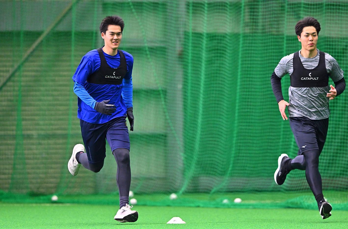 ランメニューをこなすドラフト2位の藤田琉(左)とドラフト1位の柴田