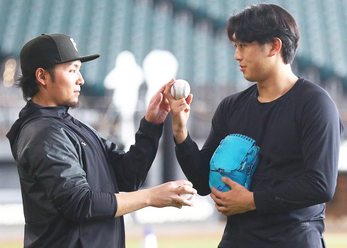 「(教わりたいことは)全部ですね。一緒にいさせてもらうので、常に勉強姿勢を持って。自分でも今年、取り組もうと思っていることはあるので、そこはぶれずにやりながら、ほかの足りないところを吸収できれば」。昨季、最多勝と最高勝率の2冠に輝いた最高のお手本から、さまざまなことを貪欲に吸収していく構えだ。