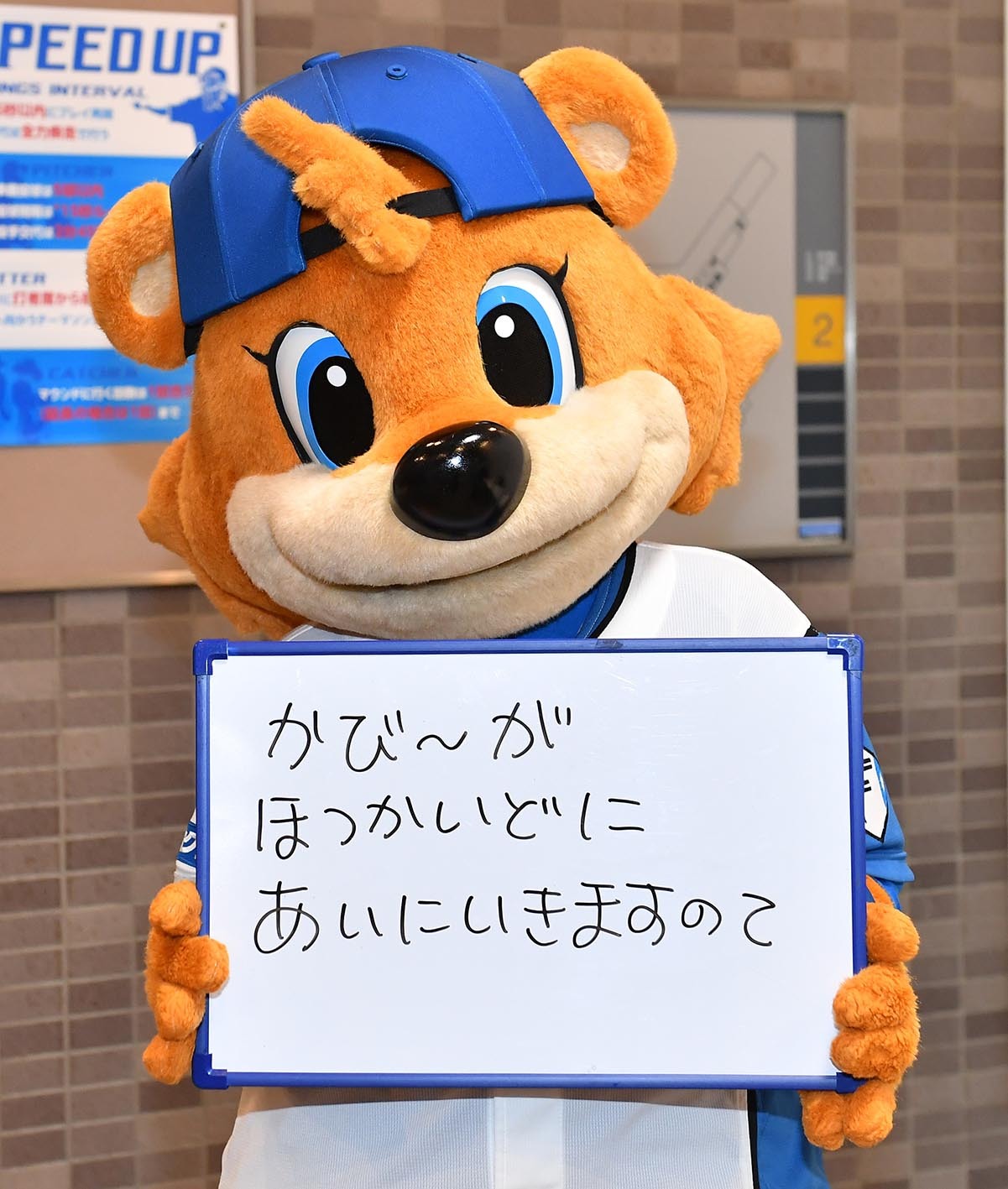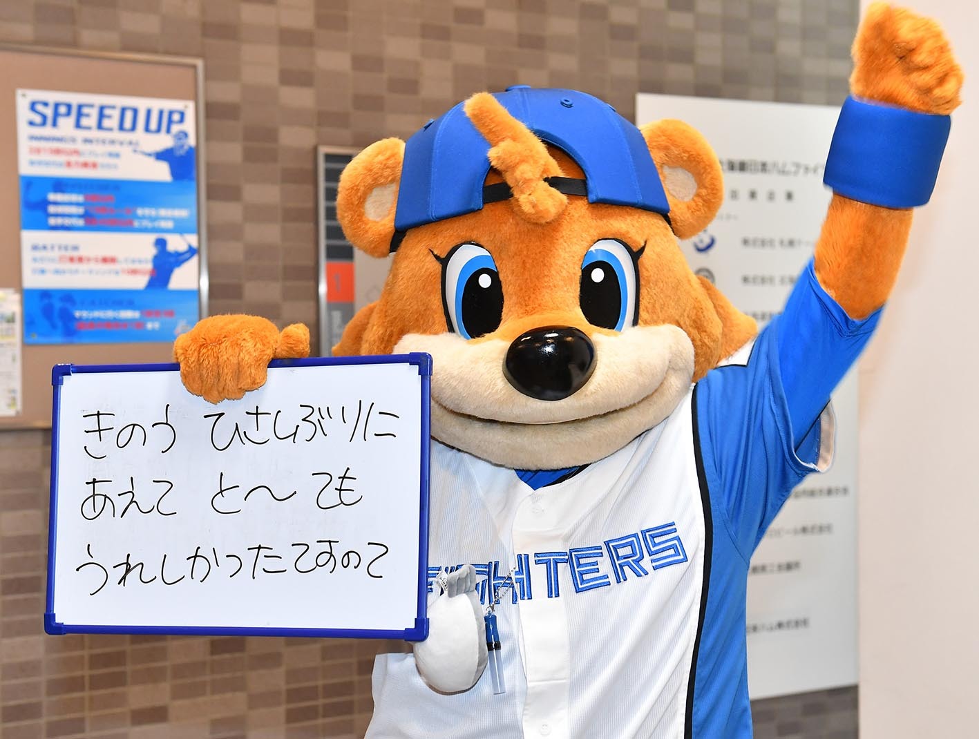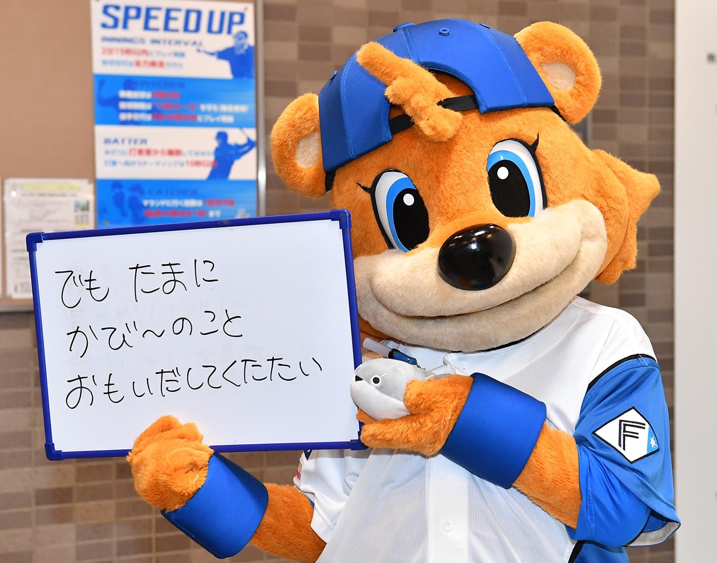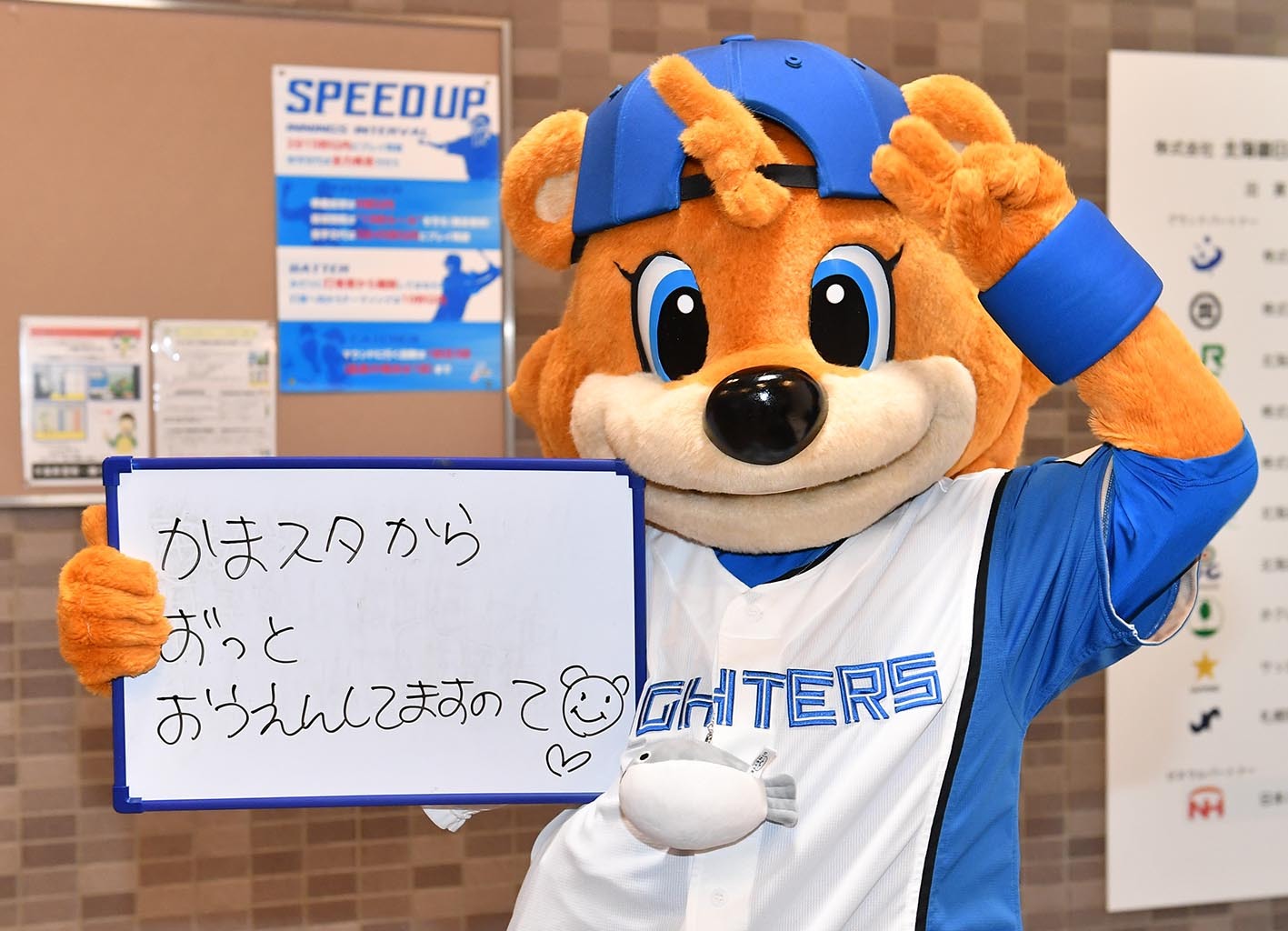 田宮裕涼 仲良しの2軍マスコットに今年も〝決別宣言〟!? それを受けて、カビーの筆談コメントも