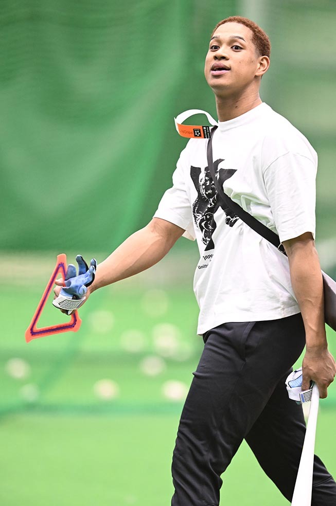 「きょう打っていたメニューがほとんどなんですけど、その中でいろんな意識をして。最終的にこれをやれとか、ないんですけど、1週間でいろいろ教わっていく中で、継続してやっていきたいなと。僕がピックアップしてやっている感じです。いろんなメニューを数多くやったわけではないんですけど、1個1個、奥が深いというか。形だけやっているだけでは良くなくて。以前に行ったドライブラインみたいに、ドリルの種類が多いとかではないんすけど、いろんなもの使って取り組む。現地に行った時はペンキのはけで、板をなぞるような練習法もありました。何がしたいか、というのは、レクチャーの部分でやって、大事なことは理解したので。あとは教わったことを中心に練習して、どれだけいい打ち方、いいメカニックに近づいていけるか」