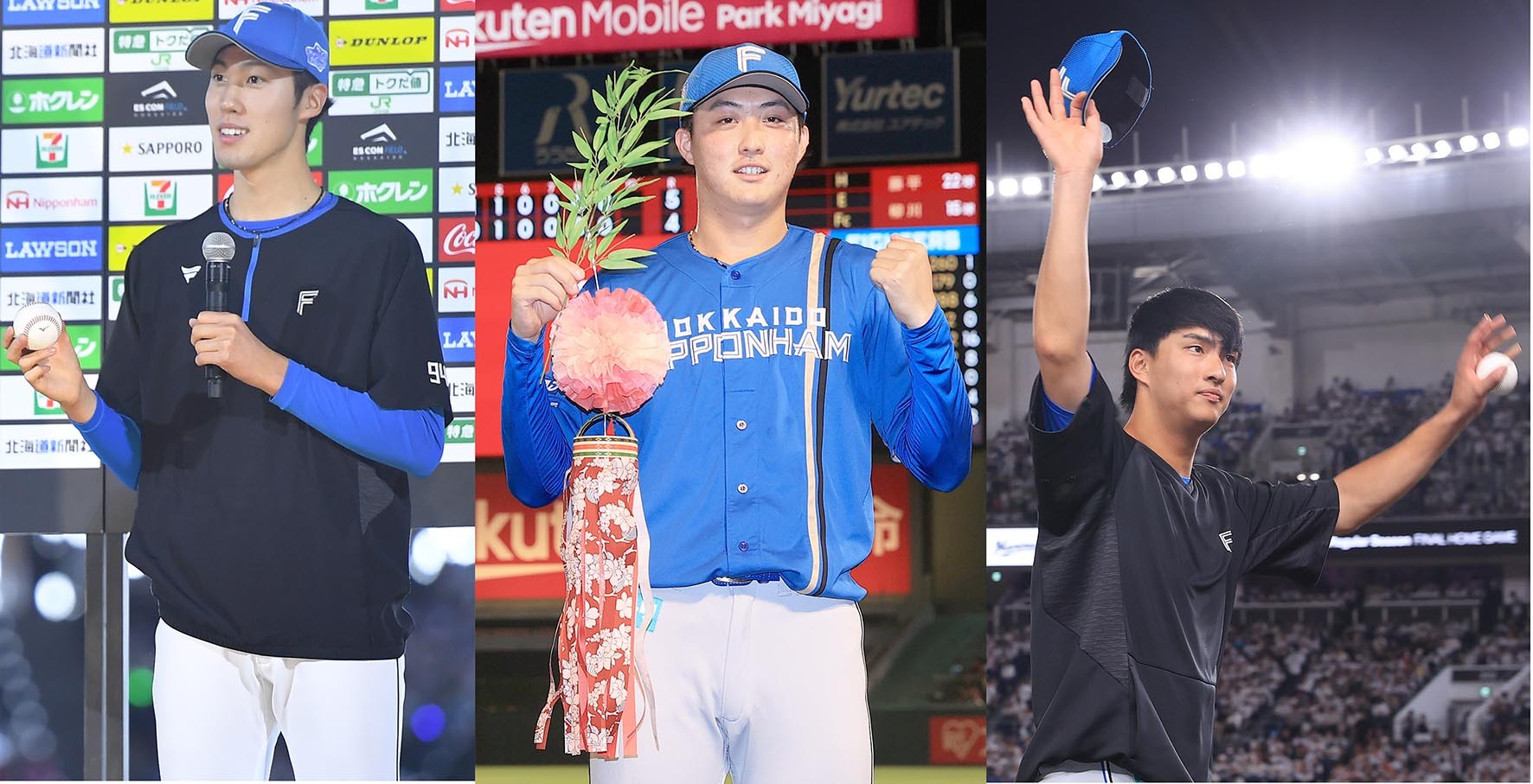 昨年6月に初勝利を挙げた福島(左)、同8月に初セーブを記録した柳川(中央)、同10月に初勝利を飾った達(右)