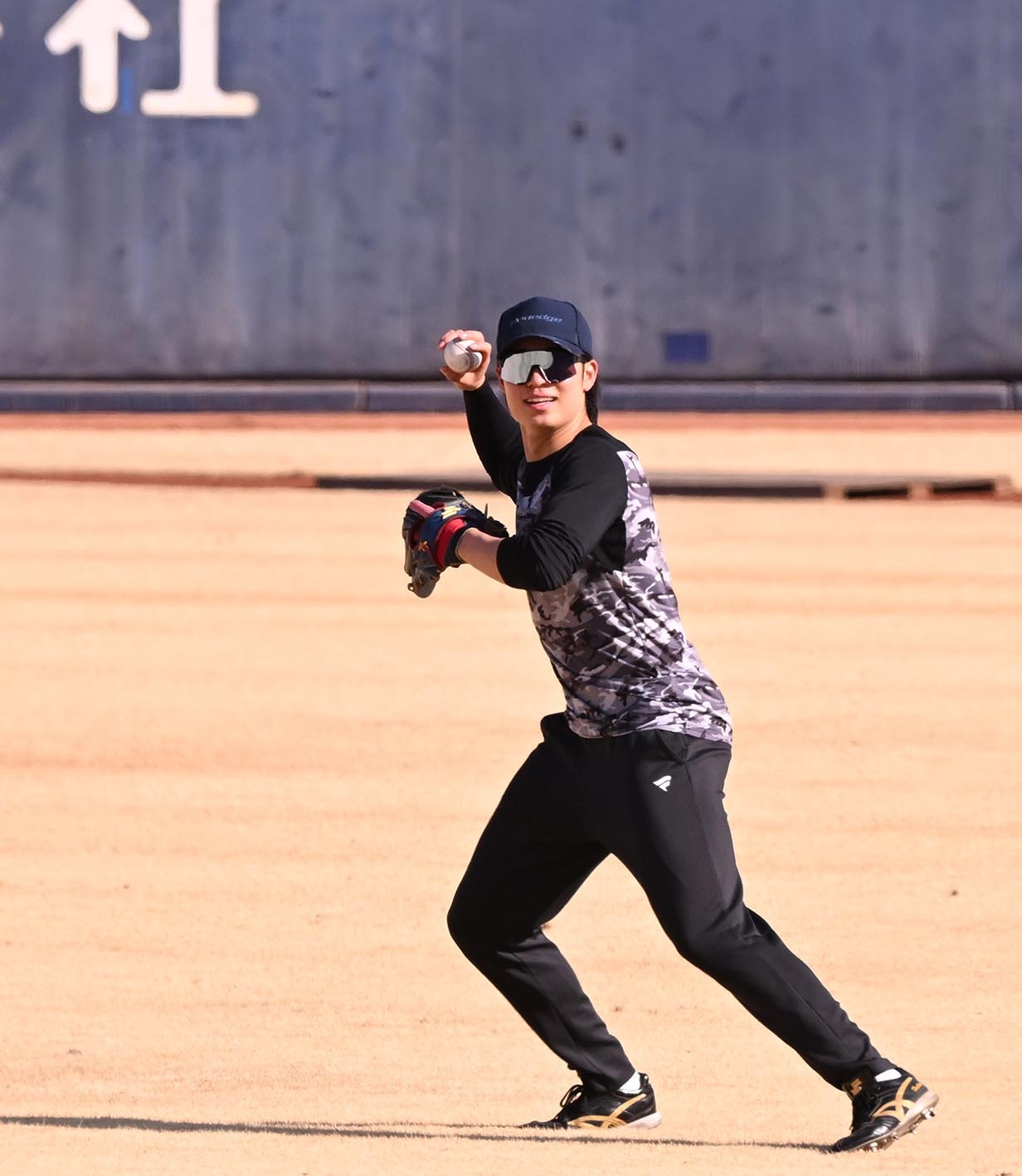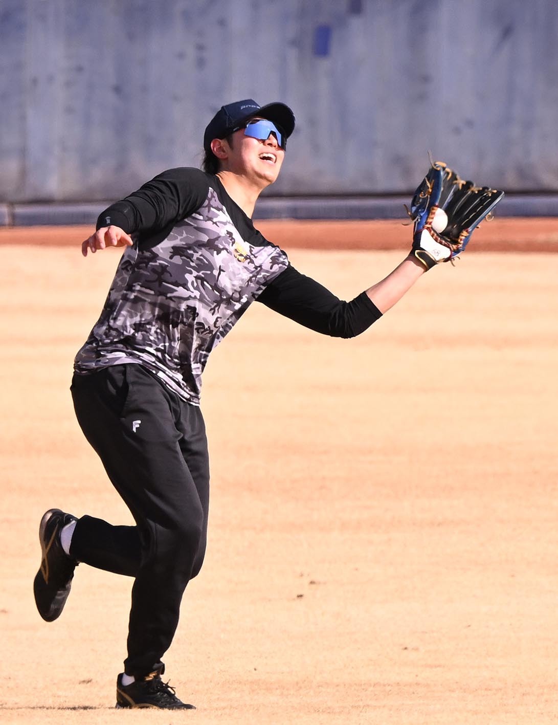 「やっぱり、フィジカル面がすごい。もう、(ドラゴンボールの)スーパーサイヤ人みたいな体をしているので。足も速くて、パワーもあって。僕は全然、足りていないので、江越さんのトレーニングをこっそり見たりしていました。それを生かして、僕もああいう強じんな肉体を手に入れたいです」。少しでも近づけるよう、今オフは筋肉増量に励み、シーズン中に83キロだった体重を90キロに乗せた。
