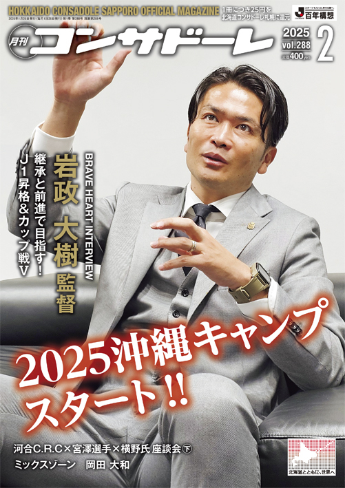 北海道コンサドーレ札幌のオフィシャルマガジン「月刊コンサドーレ」2月号を25日に発売する。「BRAVE HEART INTERVEW」は岩政大樹新監督。今季、ミシャ監督に代わって札幌の指揮官に就任。継承と前進でJ1昇格とカップ戦のタイトルを目指す。ミシャがつくり上げた札幌のサッカーへの思いと、自身のサッカー観を熱く語った。