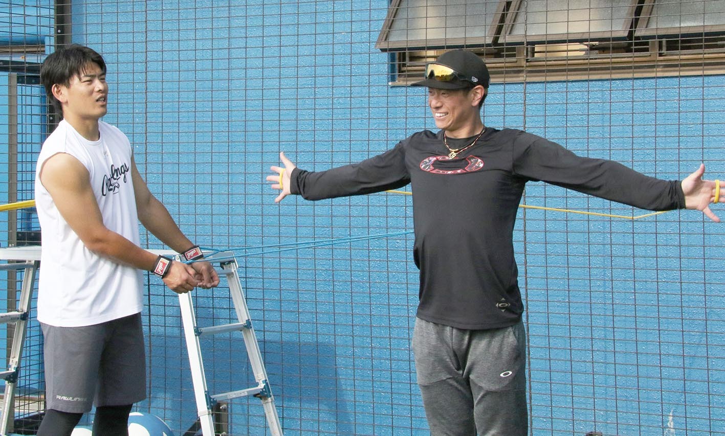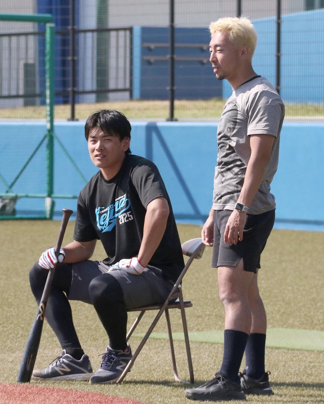 昨年11月の「F FES」で新庄剛志監督(52)から、今季の「開幕4番」に指名された。22日まで沖縄・伊江島で行われた松本剛外野手(31)らとの合同自主トレに参加。重責を担うことになった背番号5のそばには、温かく見守ってくれる先輩、トレーナーがいた。
