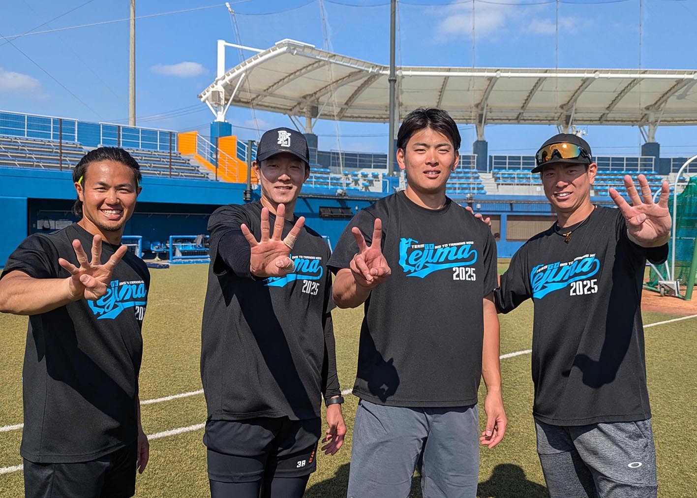 今年の伊江島組メンバーはリーダーの松本剛を筆頭に、野村と石井、細川の4人。午前中は全員でウオーミングアップ、守備、打撃などのメニューをこなし、午後からは各自がウエートトレーニングや自主練習に充てている。