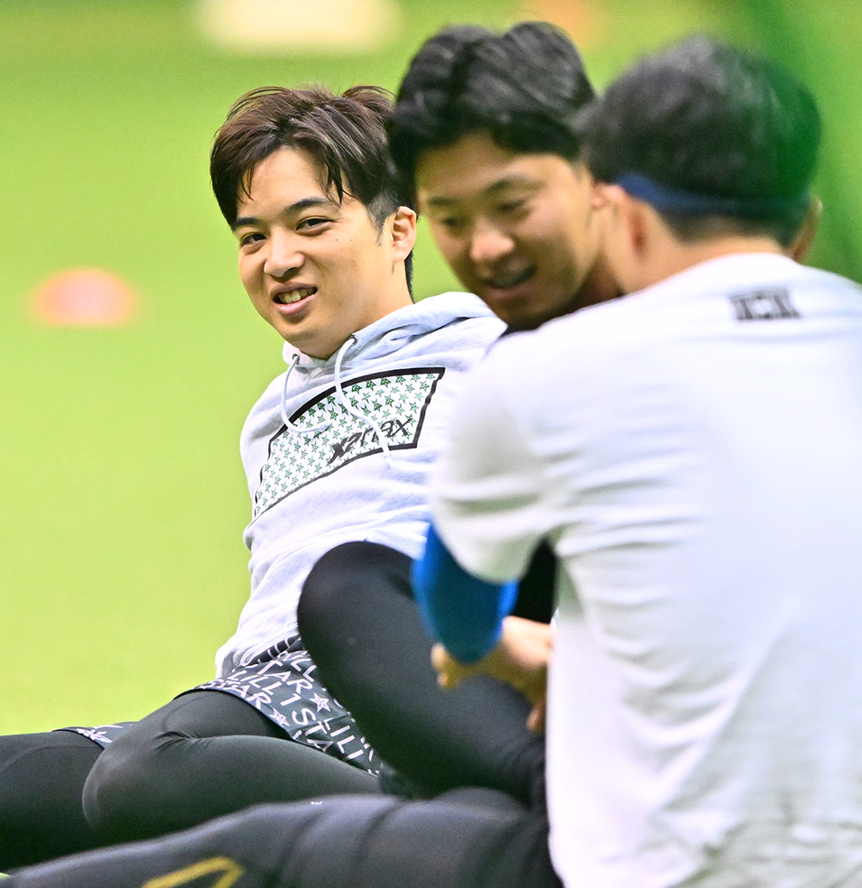 山本拓は23年オフに結婚。家庭持ちの先輩として、郡司からは「ご指導、ご鞭撻(べんたつ)のほどよろしくお願いします」とメッセージが来たとか。「『ようこそこちら側へ』と送りました。僕も1年たちましたけど、仲良くやっているので、ケンカしたら解決方法を聞いてもらえたらいいかなと思います」と、ちょっぴりドヤ顔だった。