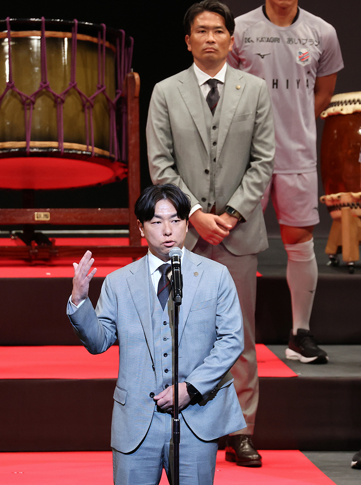 「沖縄キャンプでは岩政監督とお話させていただいた。実は同い年で、すごく通ずるところもあった。すごくコミュニケーションを大事にされている方。言語化がすごく上手な監督で、マネジメントが本当に上手。これは経営者としても見習う点が多々ある。チームを強くすると同時に、岩政さんのマネジメント力も外に対して発信していってほしい。本当に勉強になるので」