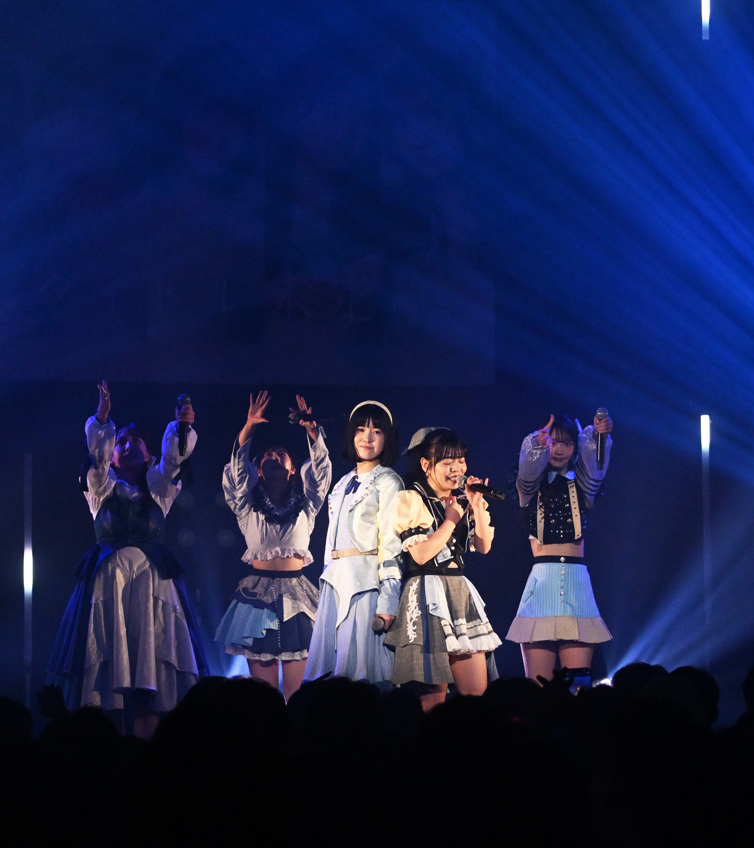 5人体制となって最初のMCパートでは、新メンバーの多田萌加が「加入して良かったねと言ってもらえる日が来るように精一杯頑張りますので、きょうはよろしくお願いします!」と、山下彩耶は「緊張より楽しさが勝っているので、このまま最後までみなさんと団結して楽しめたらなって思ってます。最後までよろしくお願いしまーす!」とあいさつした。