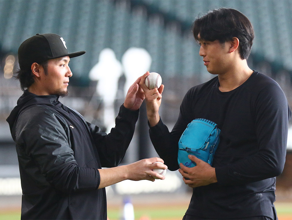 「(新庄)監督じゃないですけど、頑張らなくてもいい。愉しむ…彼の立場ではちょっと違うのかなと思いますけど。けがなく大事にね、ってことは言いました」。昨季投手2冠に輝いたエースの言葉は優しさにあふれていた。