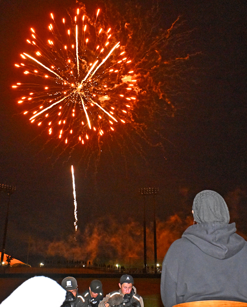 新庄監督がプロデュースして始まったキャンプイン前日の花火大会は、今年で3回目。選手たちも花火や催しを観覧できる球場のスタンドに集まり〝前夜祭〟を楽しんだ。