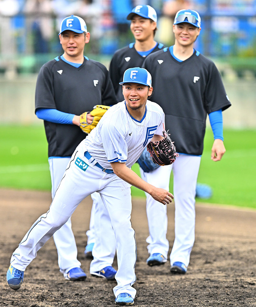 この日は朝8時過ぎに球場入り。テレビのインタビューに応じ、「チームを引っ張っていける存在でありたい。新庄監督を男にする1年にしたいです」と力強く宣言した。