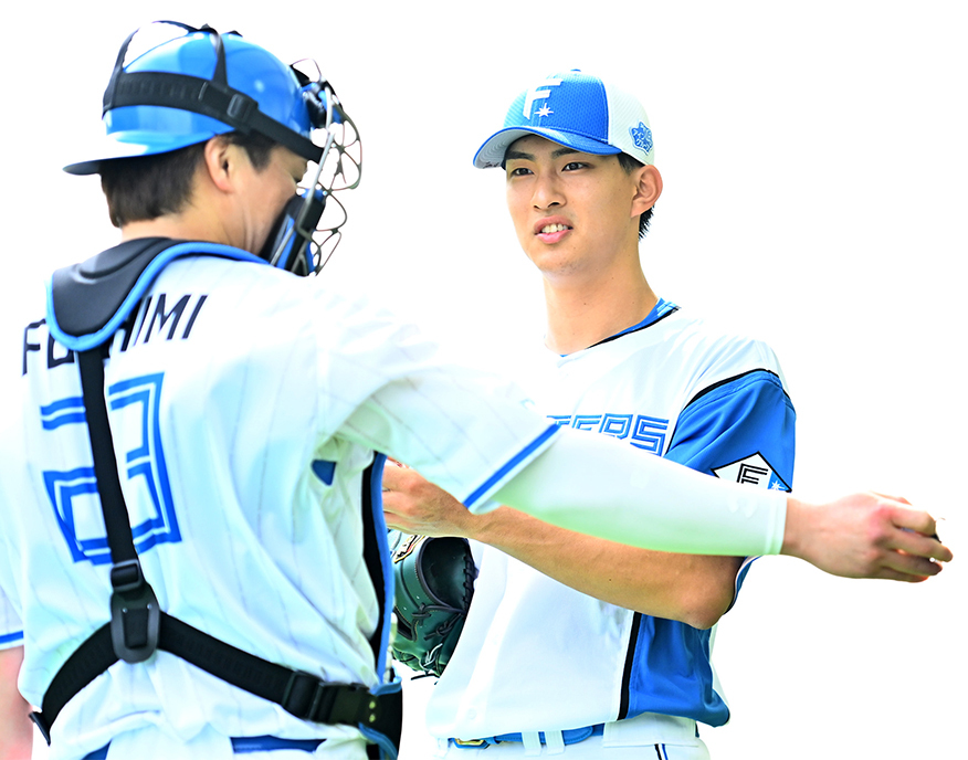 捕手の伏見とコンタクトを取りながら、直球と5種の変化球を試した。