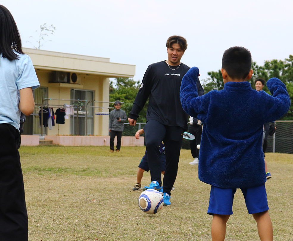 キャンプ休日に若手選手が児童養護施設訪問 沖縄出身の金村「元気をもらいました」