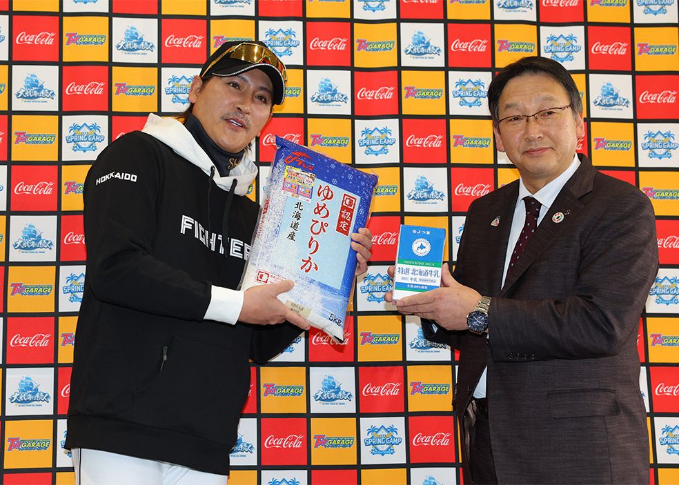 ホクレンが道産米と牛乳を贈呈 ゆめぴりか愛食の新庄監督「いっぱい買わせてもらいます」